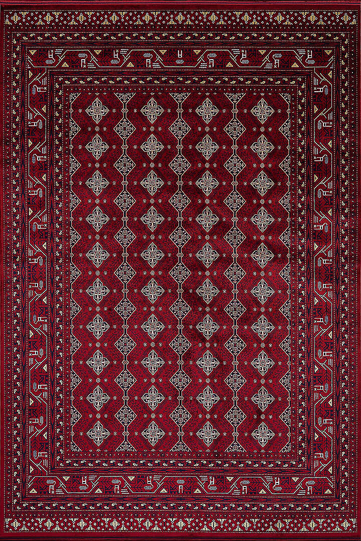 Afgan Halısı Bilicik Etnik Hoca Roshnai Otantik Desen Viskon Kırmızı Halı Bc04