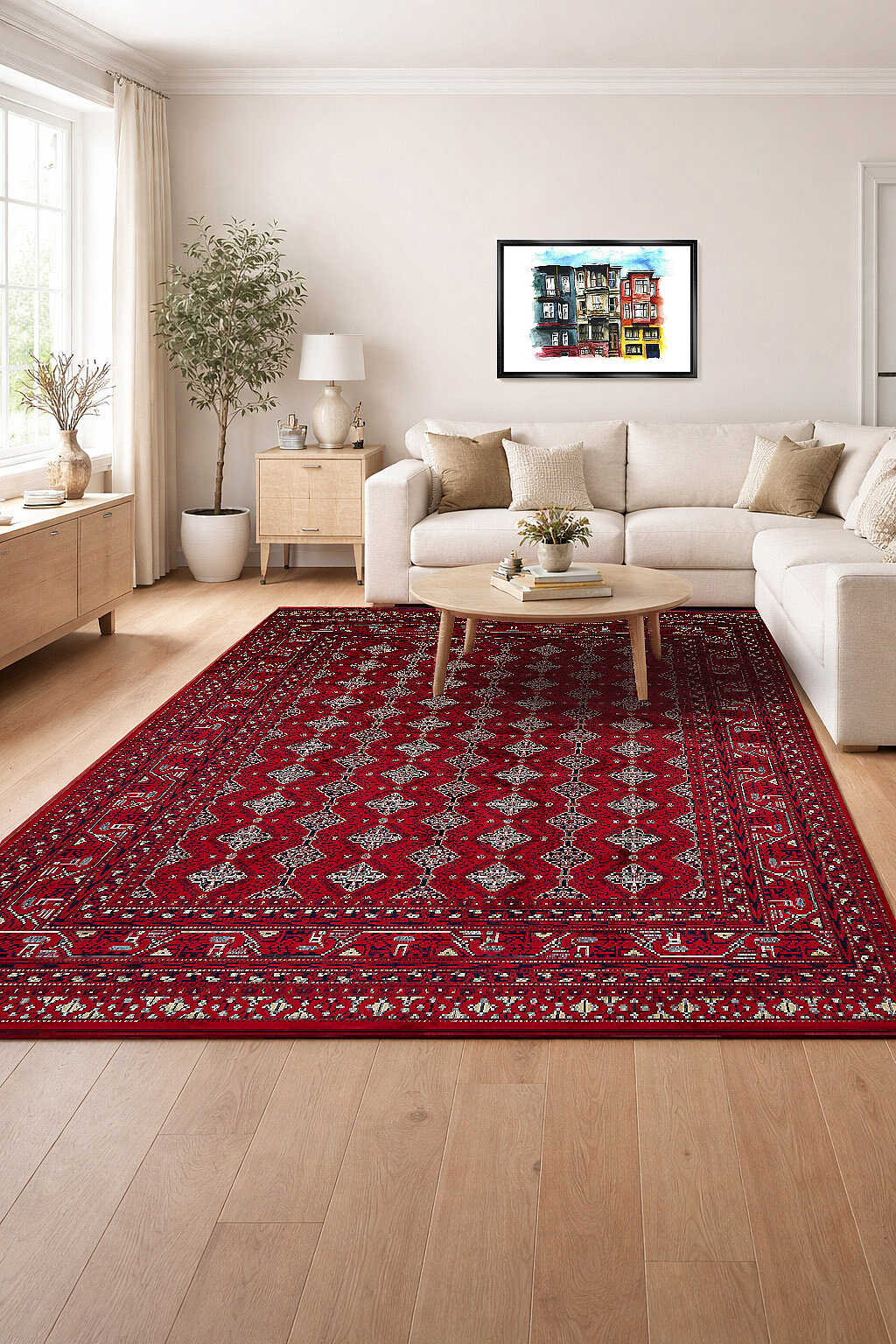 Afgan halısı estetiğini modern yaşam alanlarına taşıyan Bilicik etnik kunduz, khall, hamyap, hoca roshnai ve buhari desenli kırmızı viskon halı koleksiyonu, otantik dokusu ve zamansız şıklığıyla salon, yatak odası ve yaşam alanlarınızda dikkat çekici bir atmosfer oluşturur.