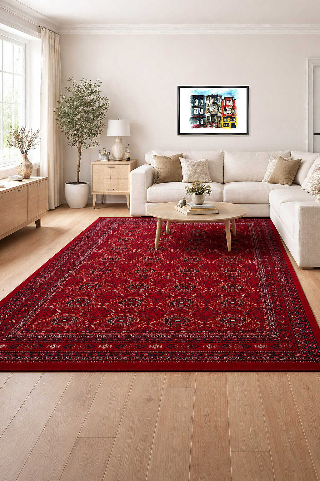 Afgan halısı estetiğini modern yaşam alanlarına taşıyan Bilicik etnik kunduz, khall, hamyap, hoca roshnai ve buhari desenli kırmızı viskon halı koleksiyonu, otantik dokusu ve zamansız şıklığıyla salon, yatak odası ve yaşam alanlarınızda dikkat çekici bir atmosfer oluşturur.