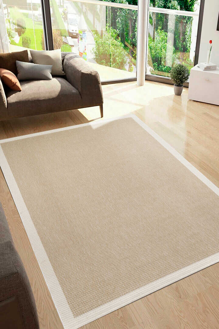 Agra Beyaz Çerçeveli Bej Sisal Dokuma Kolay Temizlenebilen Mutfak Salon Koridor ve Balkon Halısı Ar04