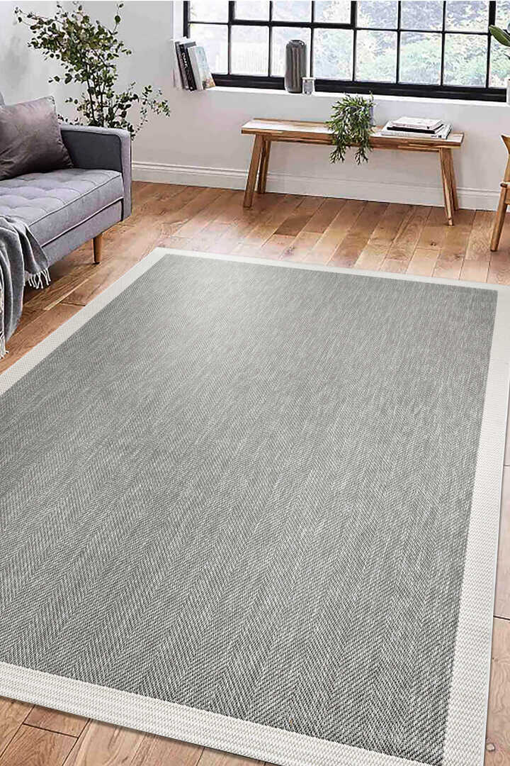 Agra Beyaz Çerçeveli Gri Sisal Dokuma Kolay Temizlenen Mutfak Salon Koridor ve Balkon Halısı Ar03