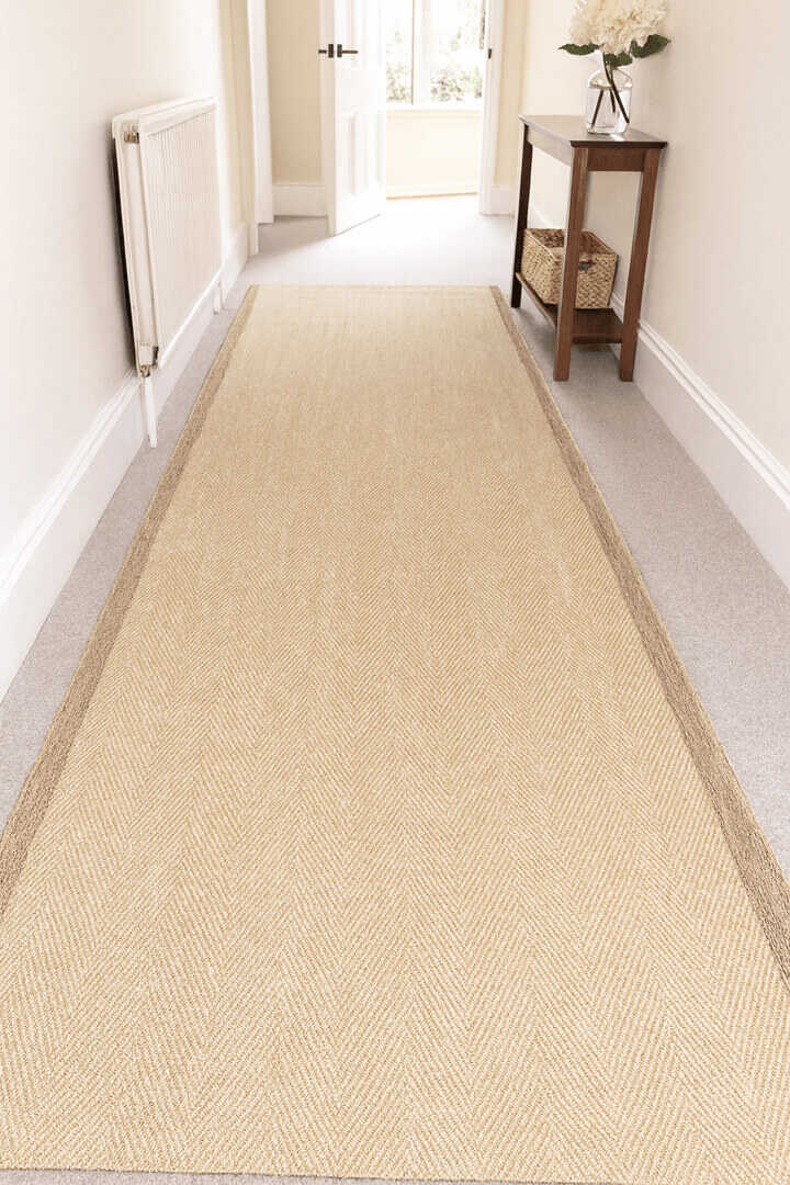 Agra Özel Ölçü Kesme Vizon Bordürlü Bej Sisal Dokuma Kolay Temizlenen Yolluk Halı Ar02