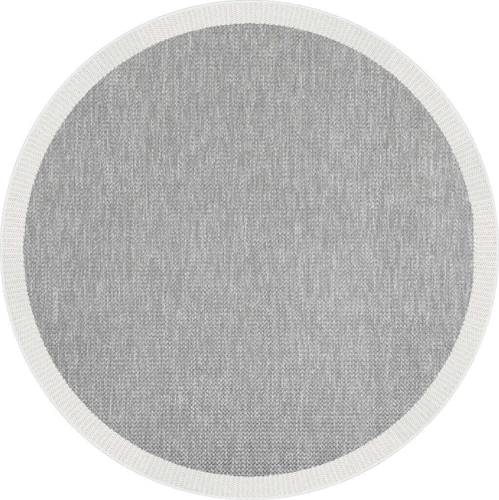 Agra Yuvarlak Beyaz Çerçeveli Gri Sisal Dokuma Kolay Temizlenen Mutfak Salon ve Balkon Halısı Ar05