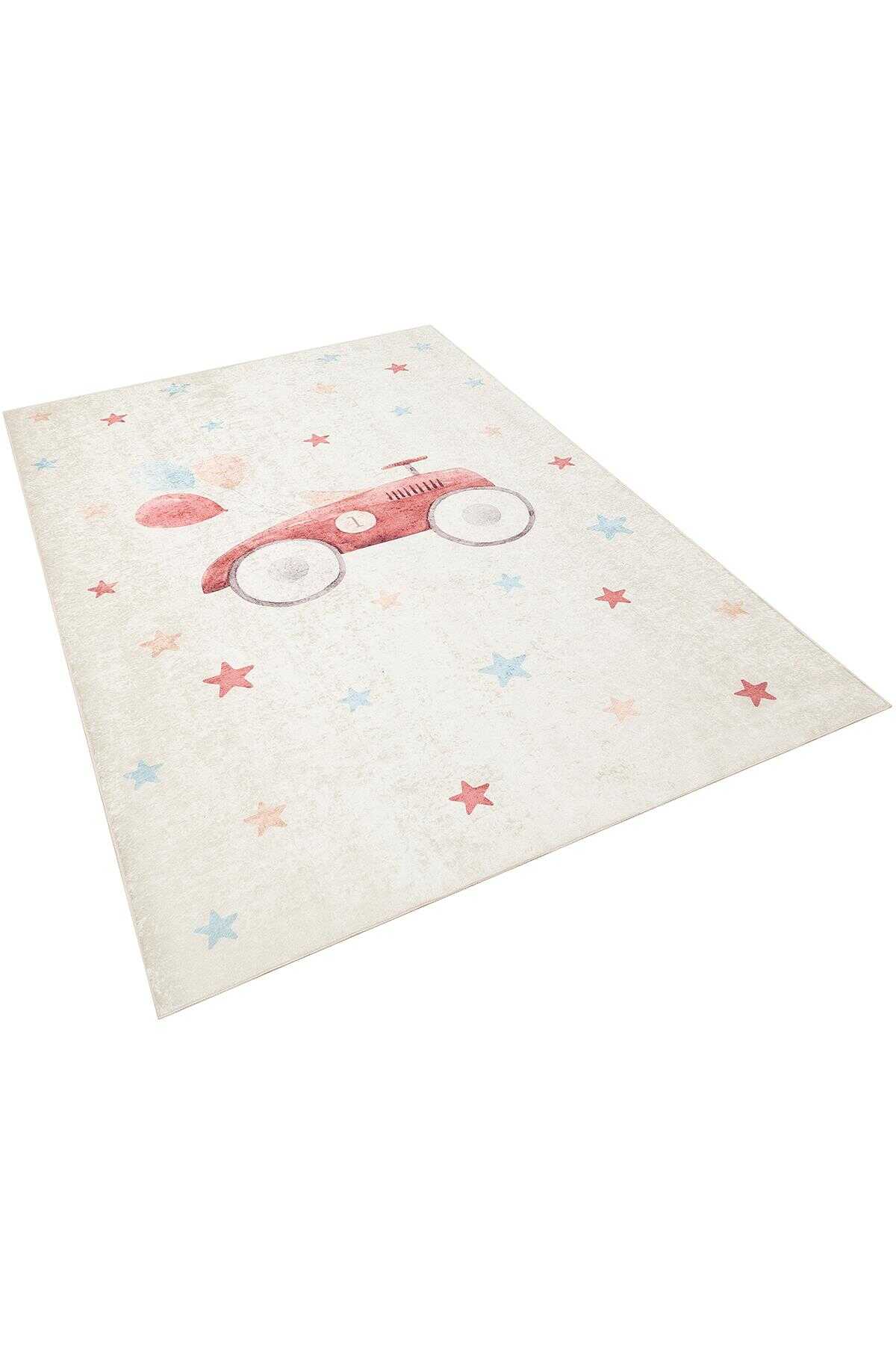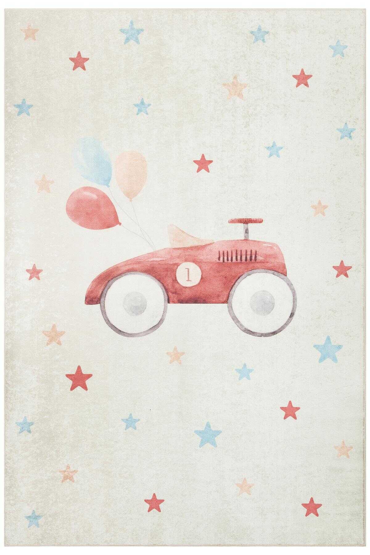 Araba Desenli Kaymaz Deri Taban Yıkanabilir Çocuk Halısı