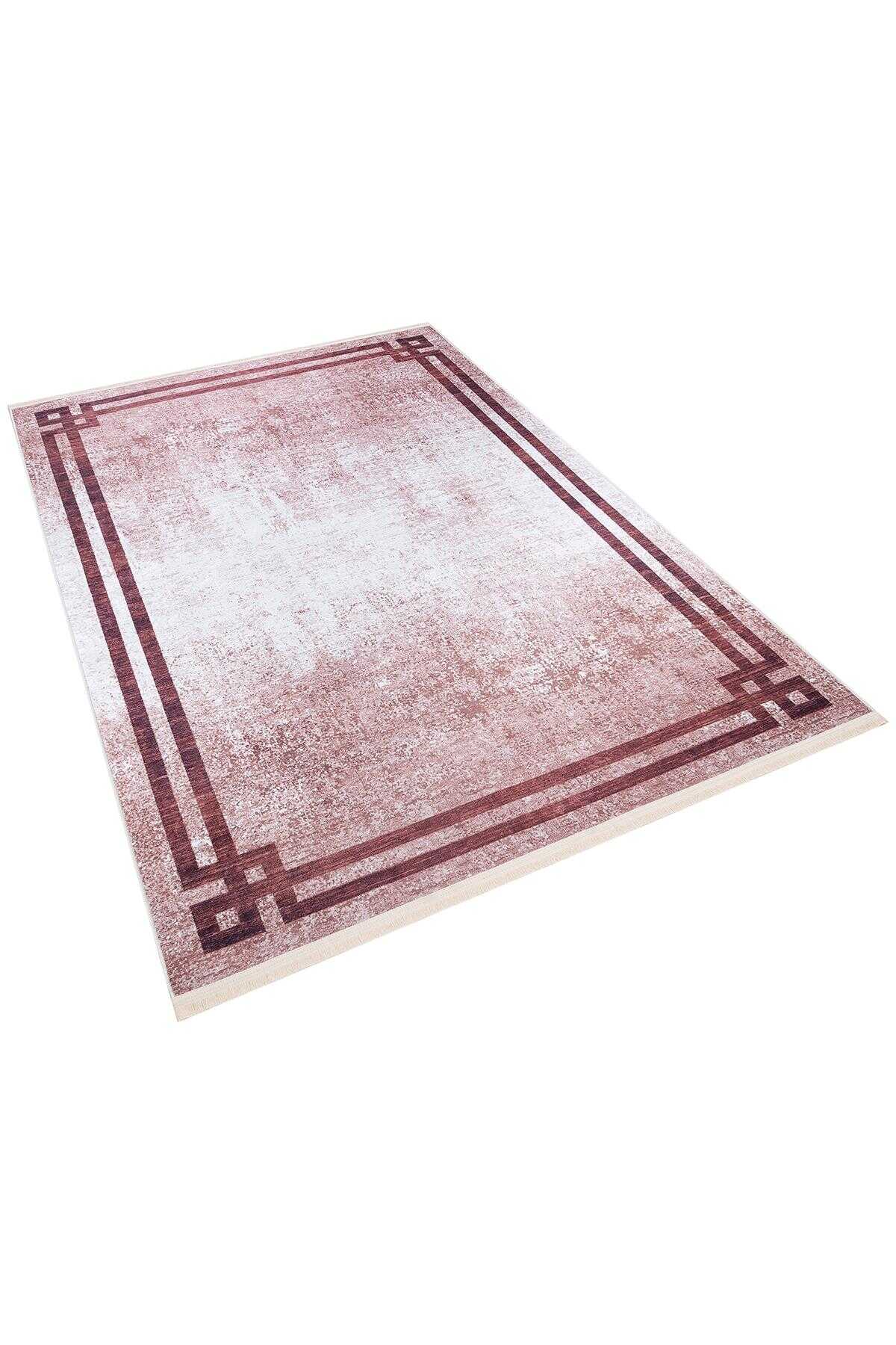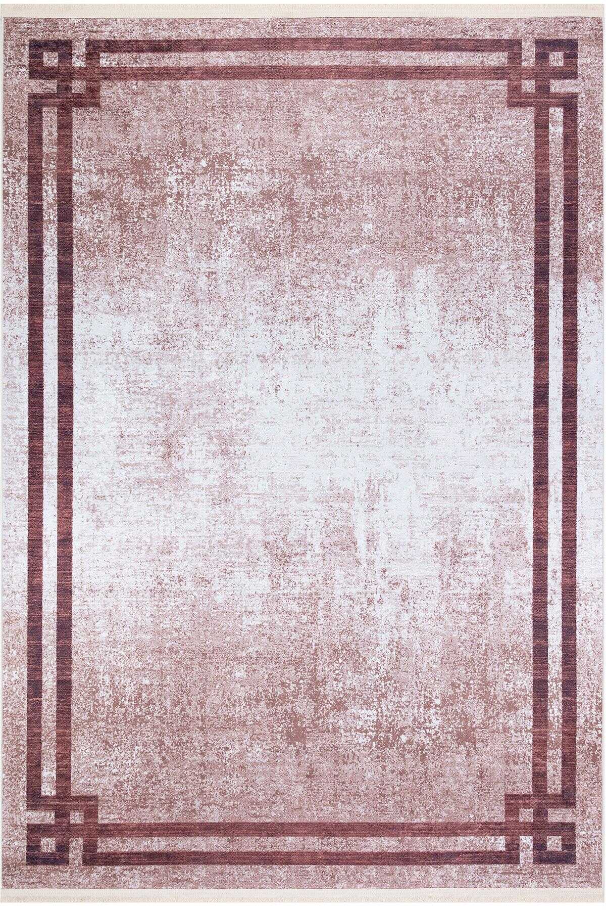 Çerçeve Desen Pamuk Taban Dijital Baskılı Halı Vizon