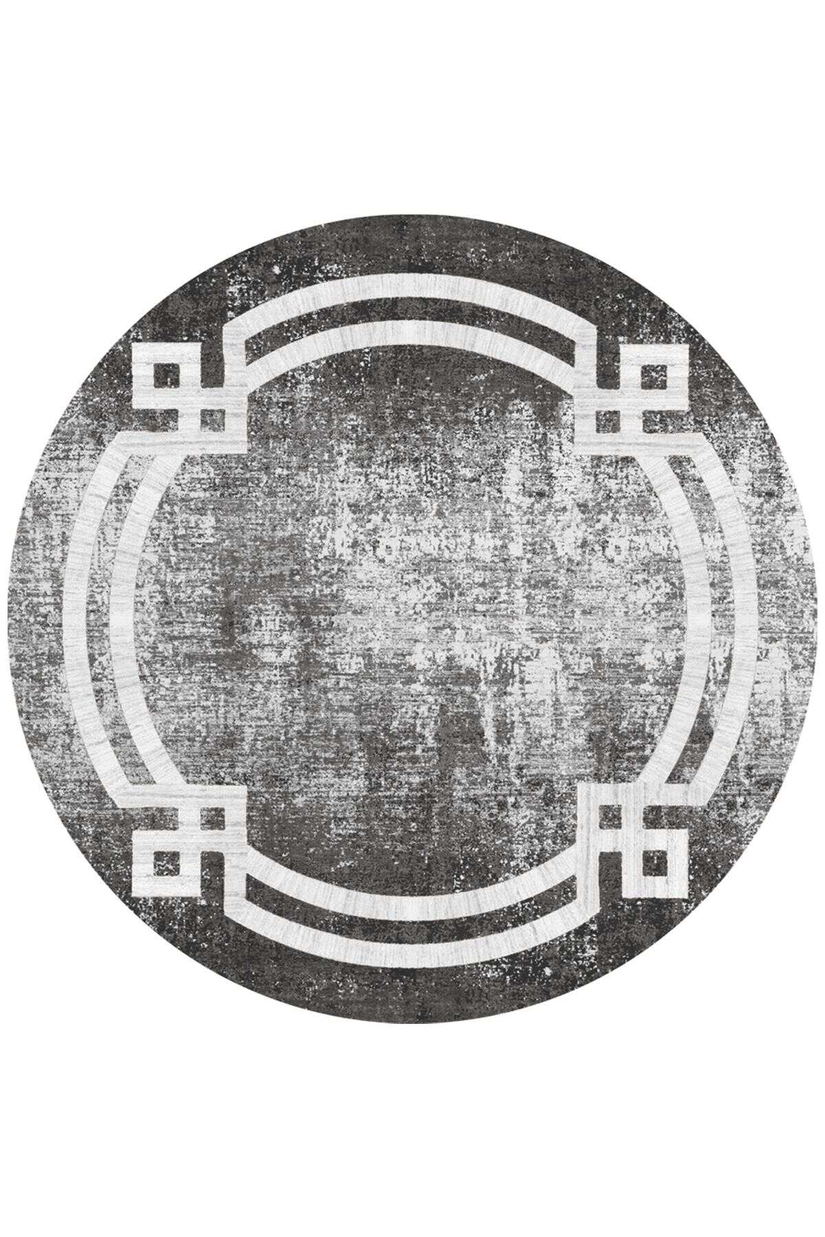 Çerçeve Desen Pamuk Taban Dijital Baskılı Yuvarlak Halı Antrasit