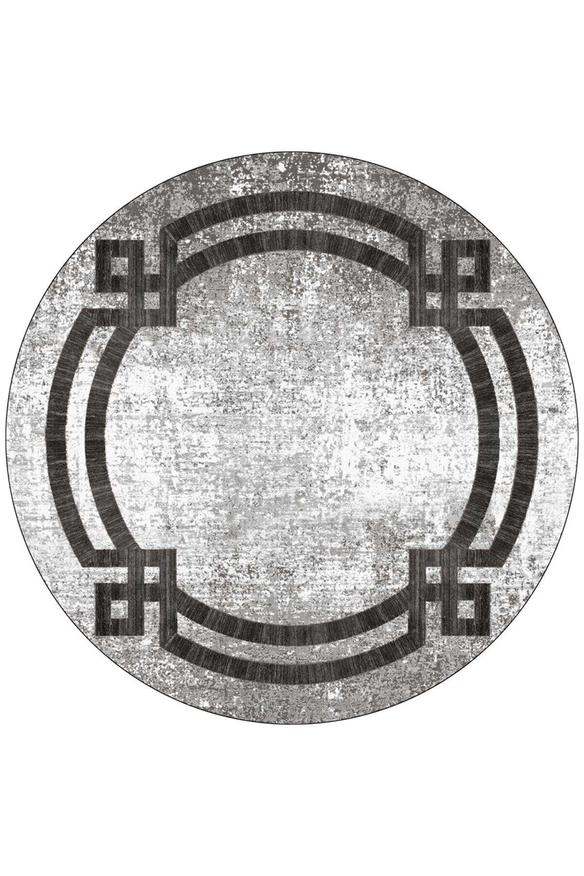 Çerçeve Desen Pamuk Taban Dijital Baskılı Yuvarlak Halı Gri