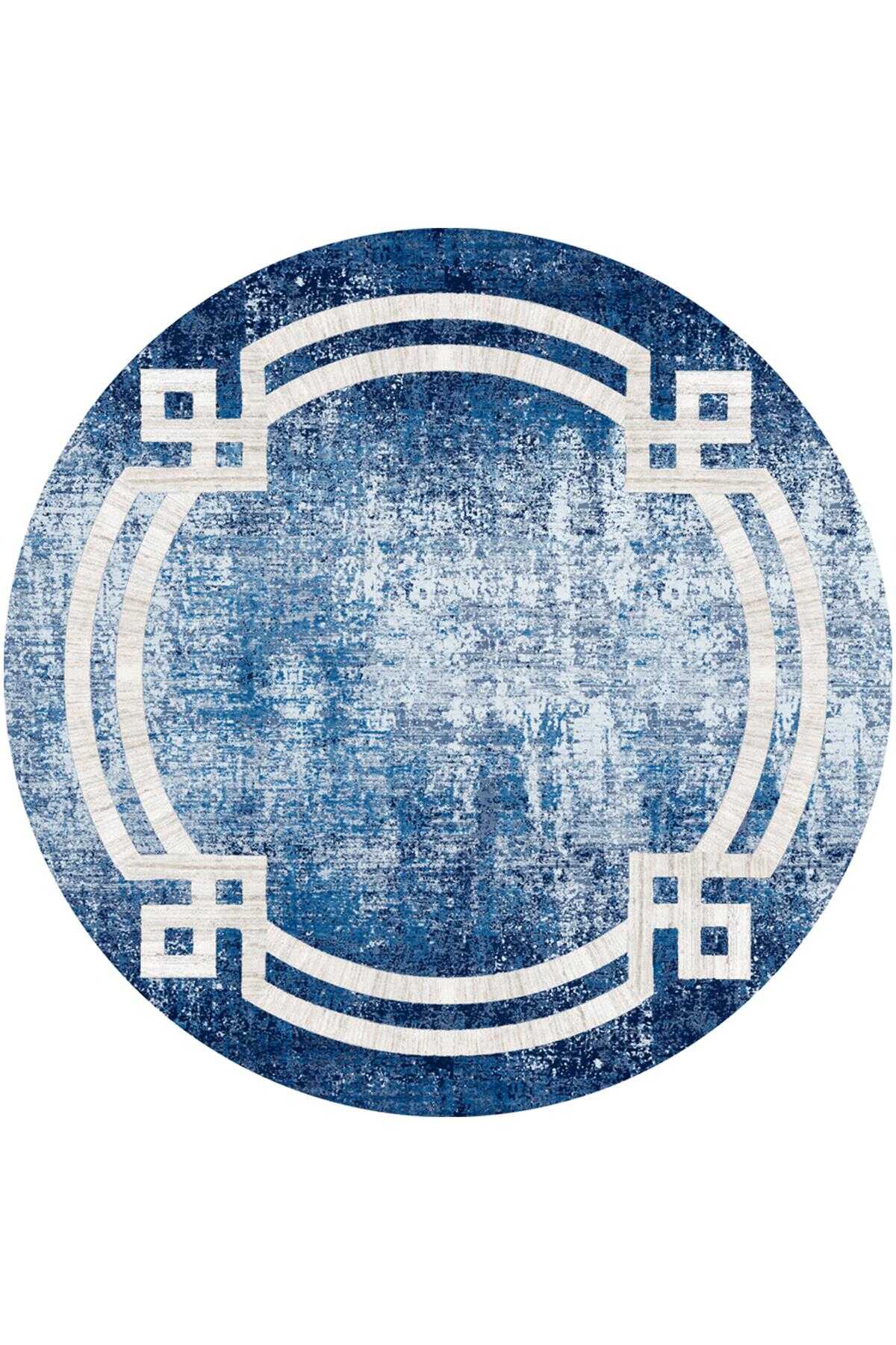 Çerçeve Desen Pamuk Taban Dijital Baskılı Yuvarlak Halı Lacivert