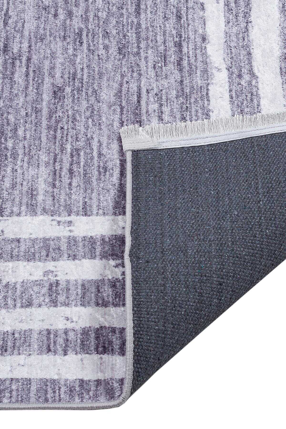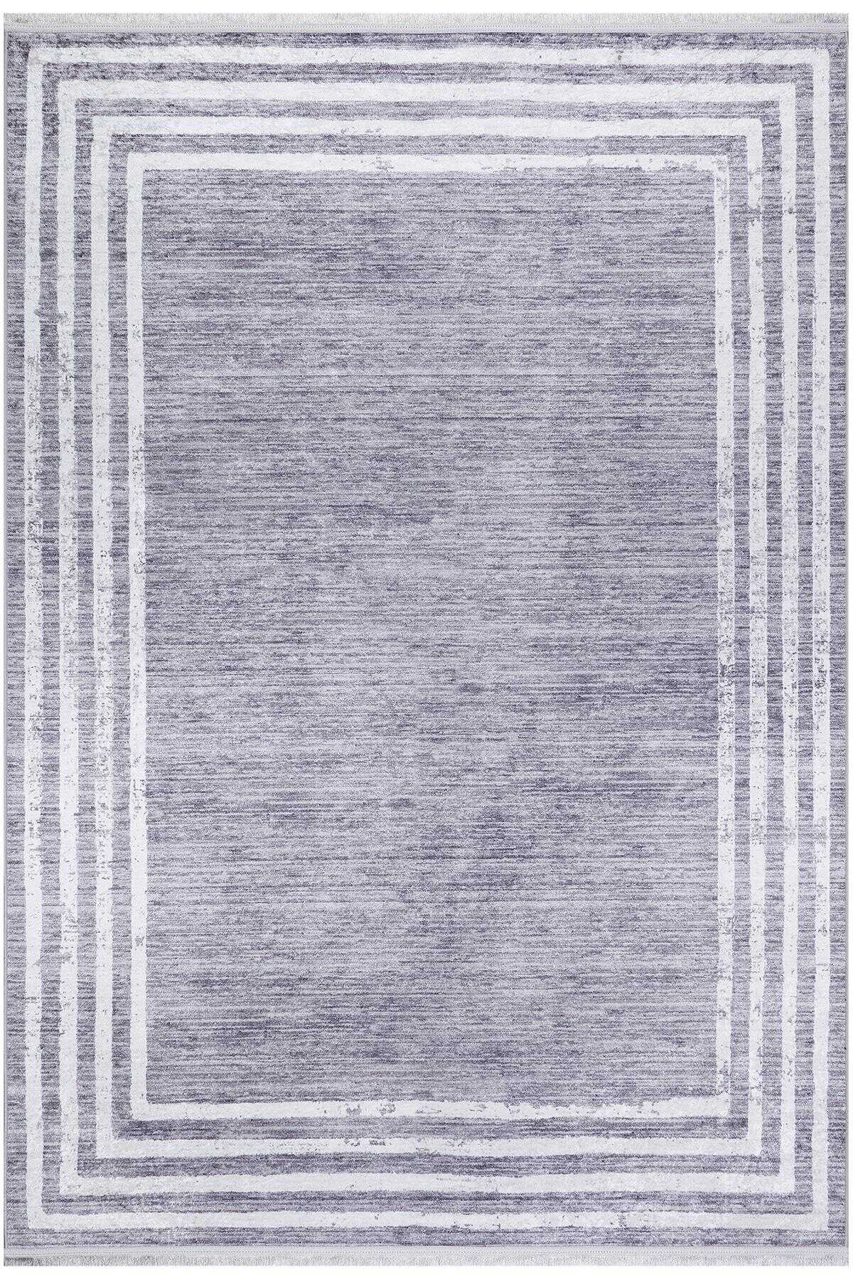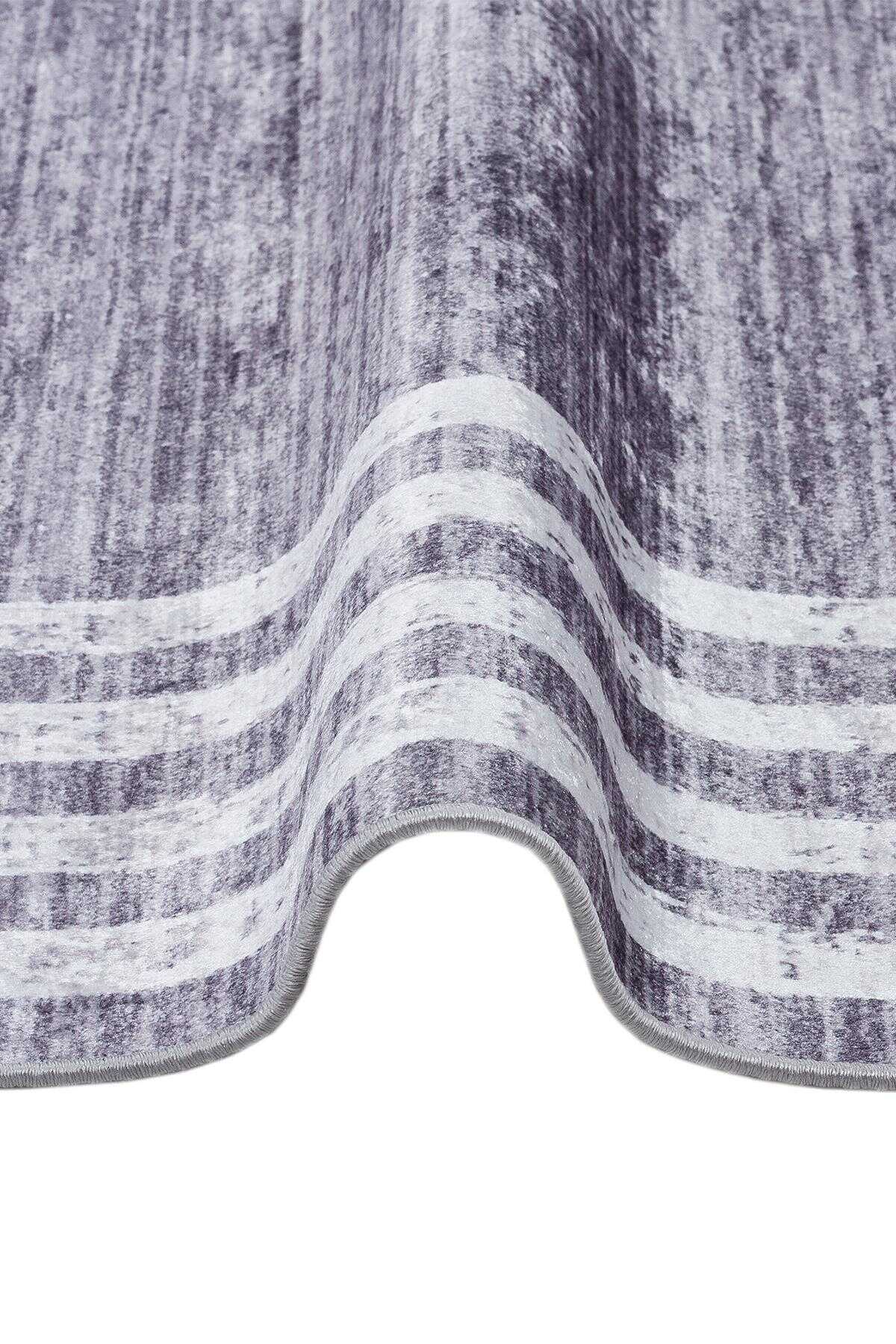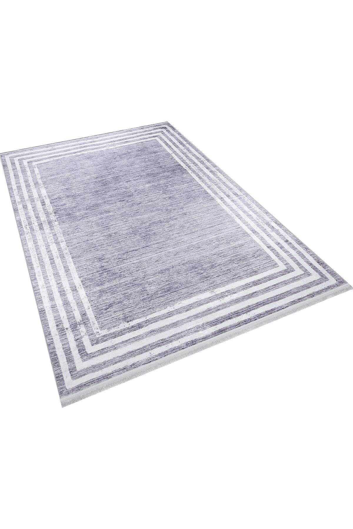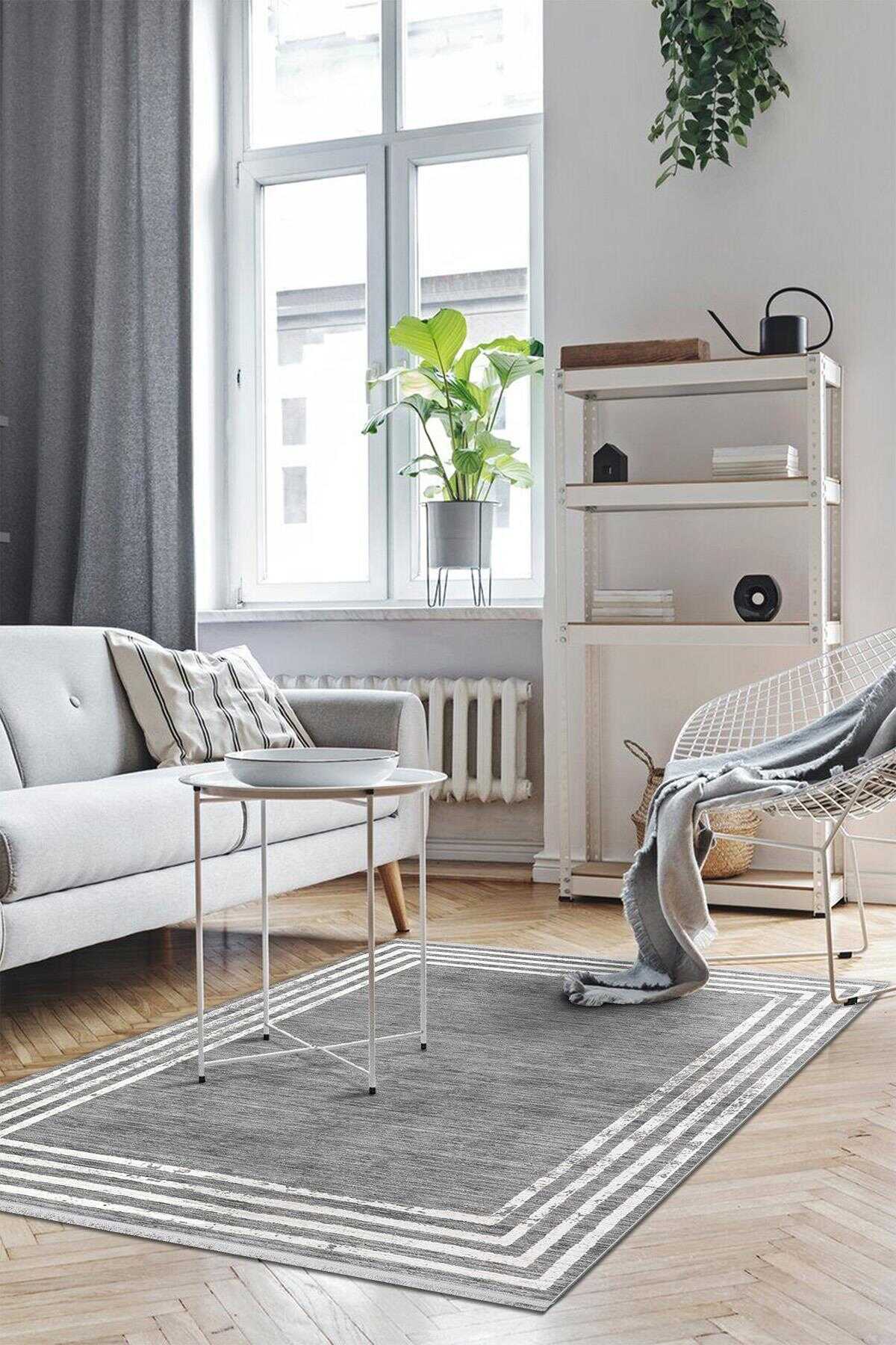 Çerçeve Desenli Dijital Baskılı Pamuk Taban Halı Gri