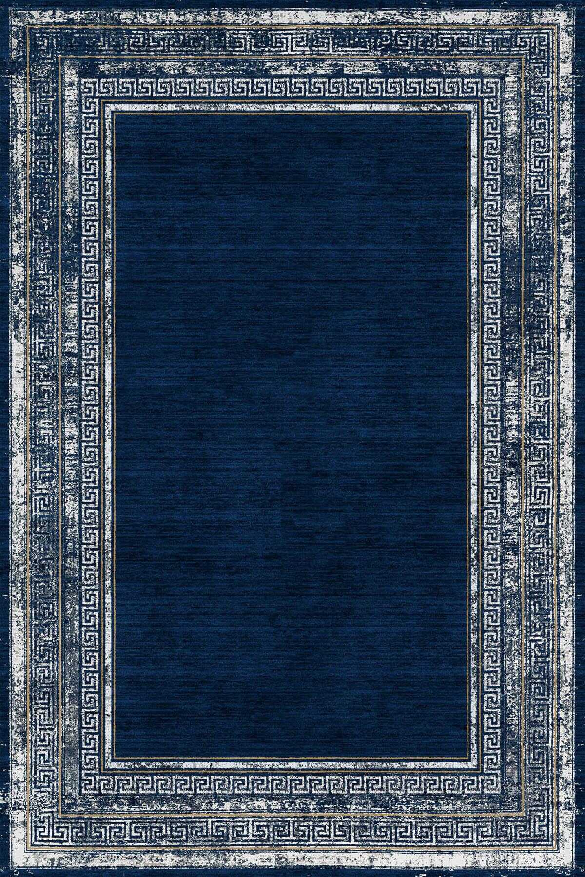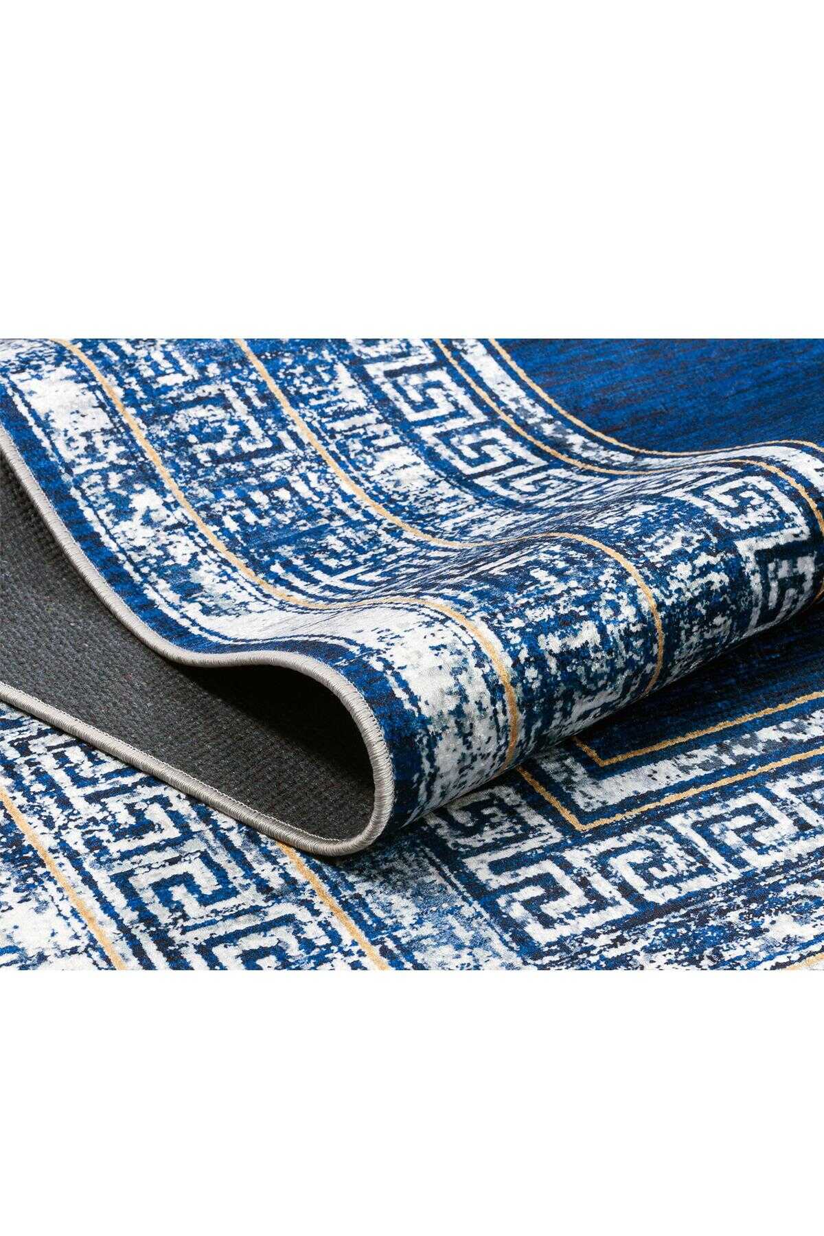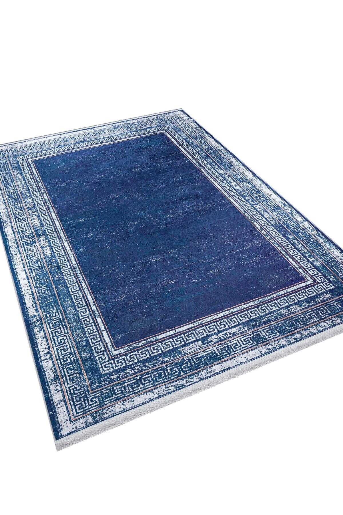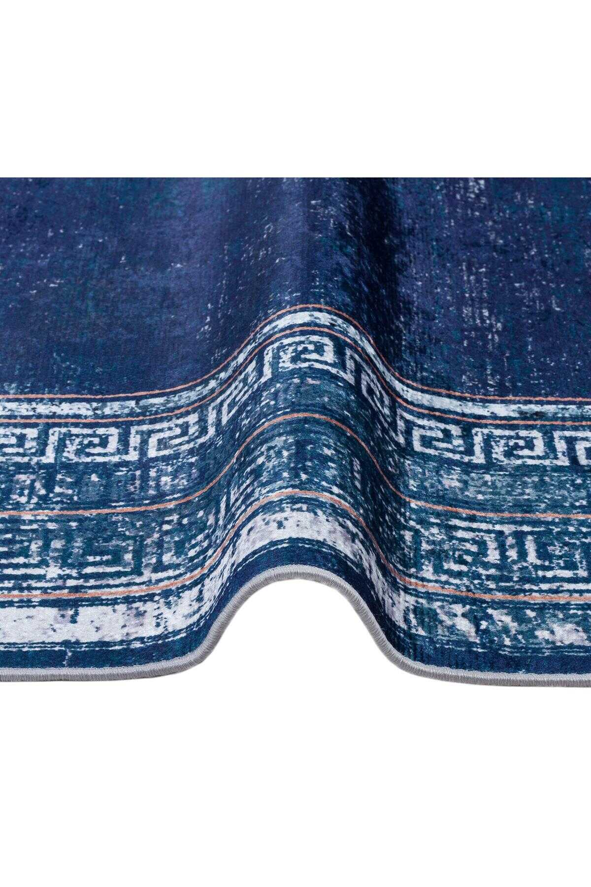 Çerçeve Desenli Pamuk Taban Dijital Baskılı Halı Lacivert