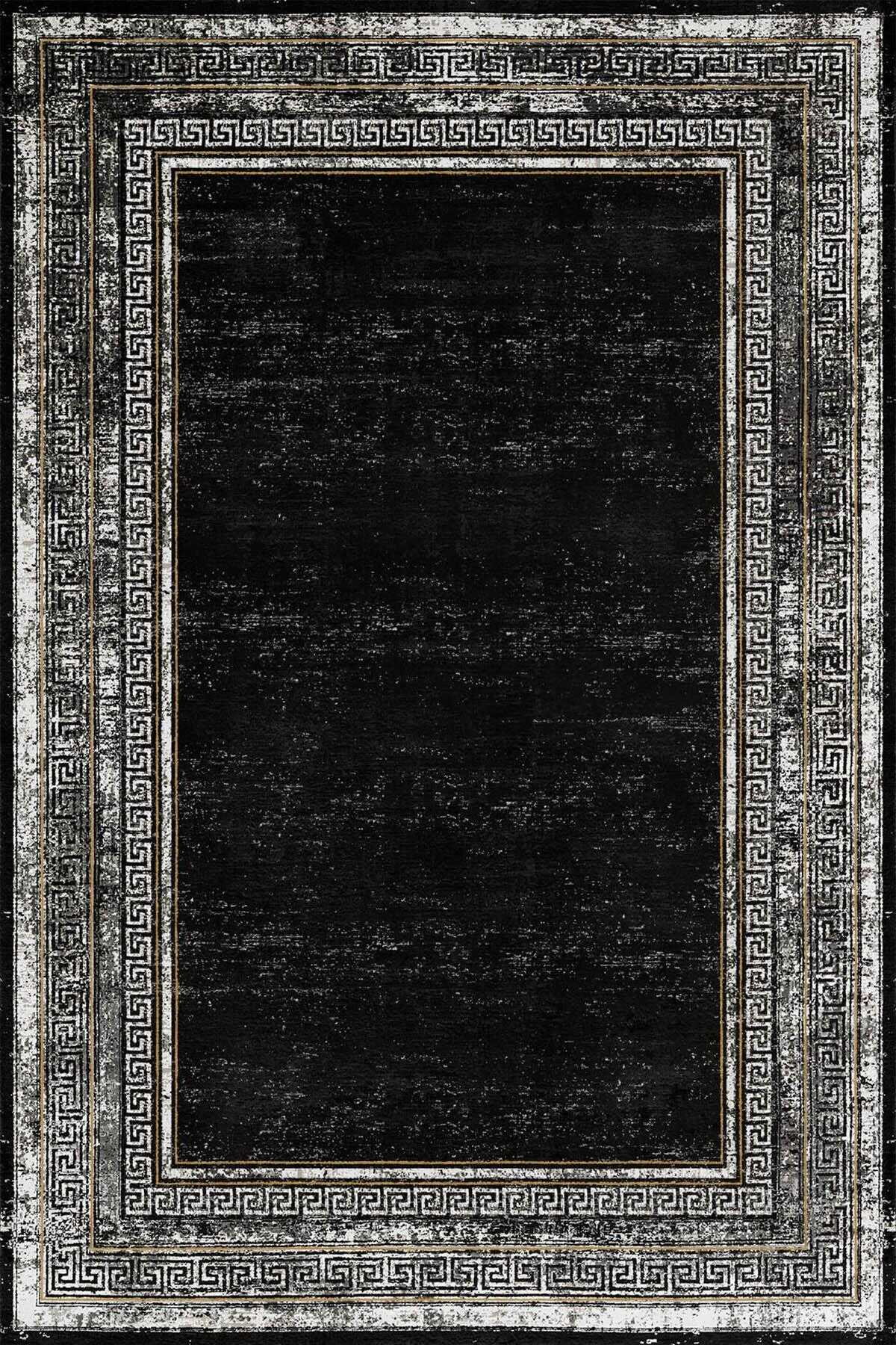 Çerçeve Desenli Pamuk Taban Dijital Baskılı Halı Siyah