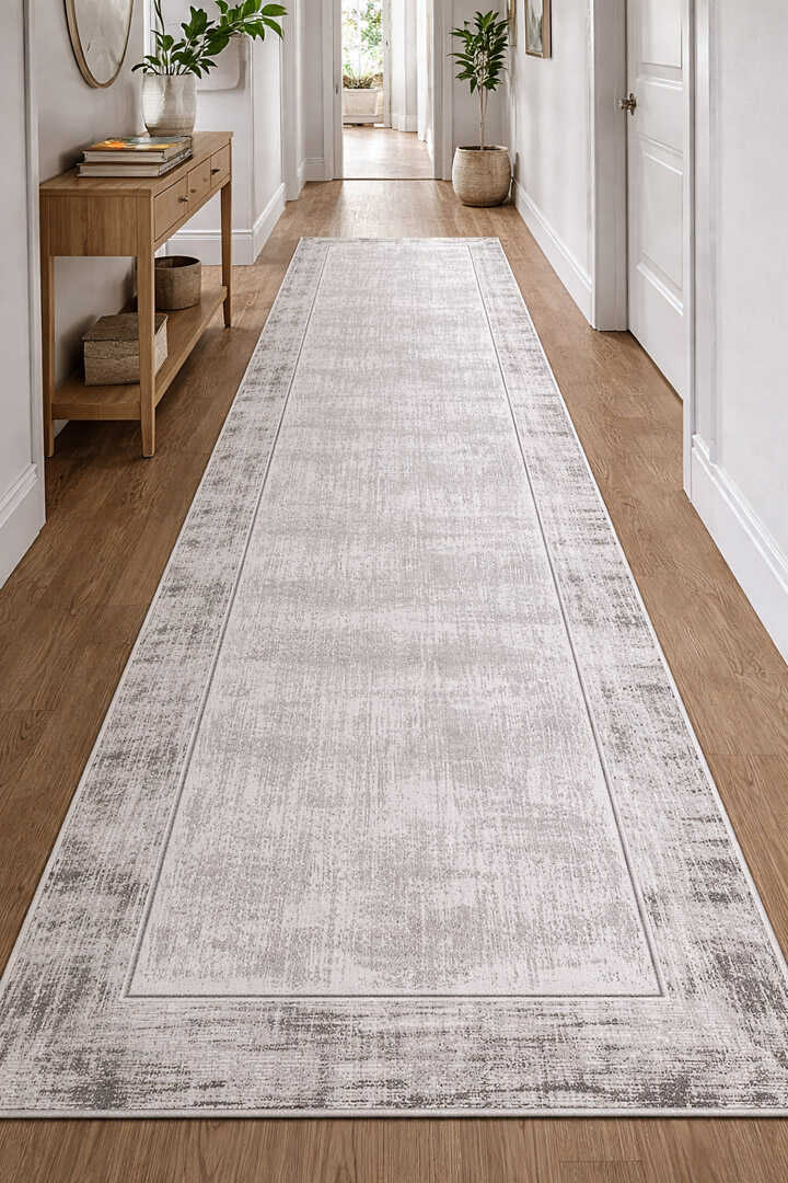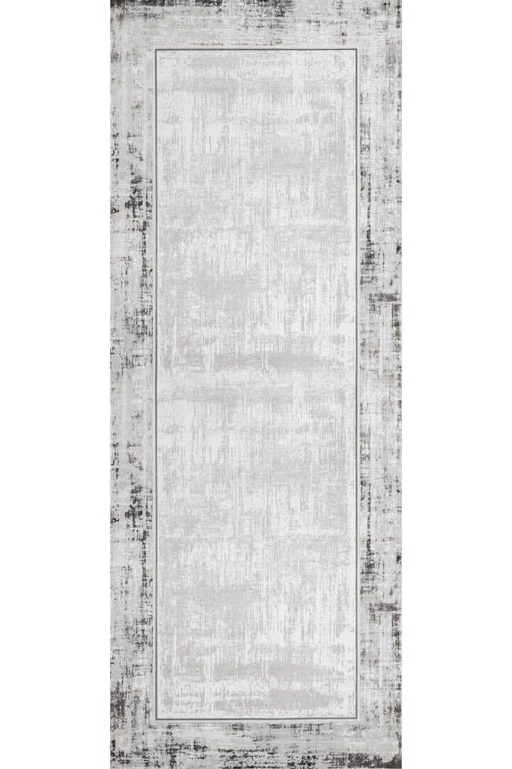 Çerçeveli Pamuk Taban Dijital Baskılı Dekoratif Yolluk Halı Gri