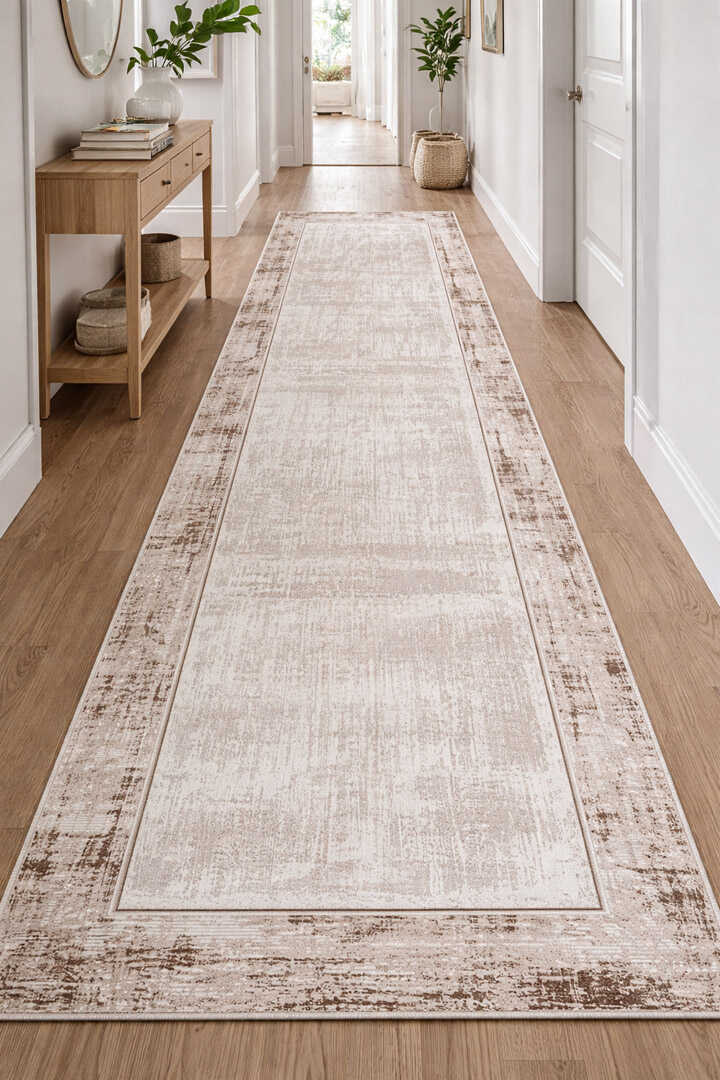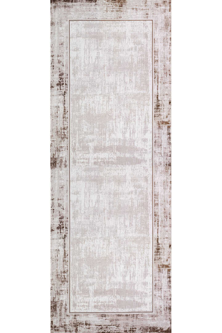 Çerçeveli Pamuk Taban Dijital Baskılı Dekoratif Yolluk Halı Krem