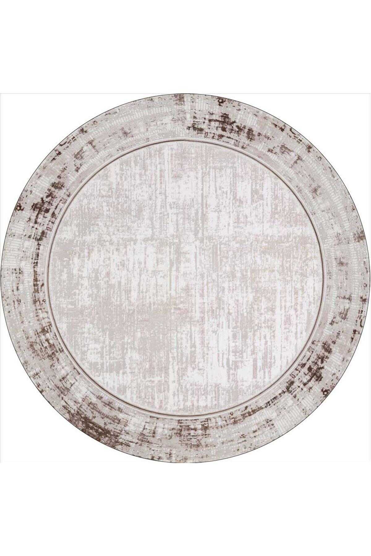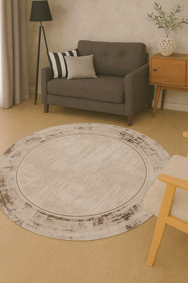 Çerçeveli Pamuk Taban Dijital Baskılı Dekoratif Yuvarlak Halı Krem