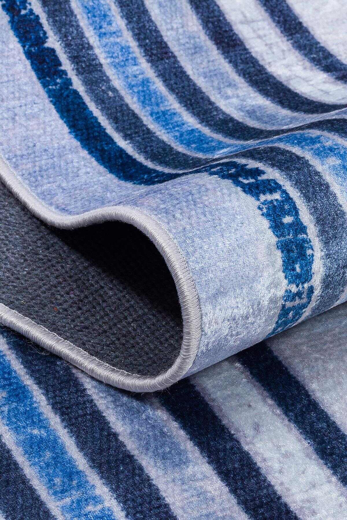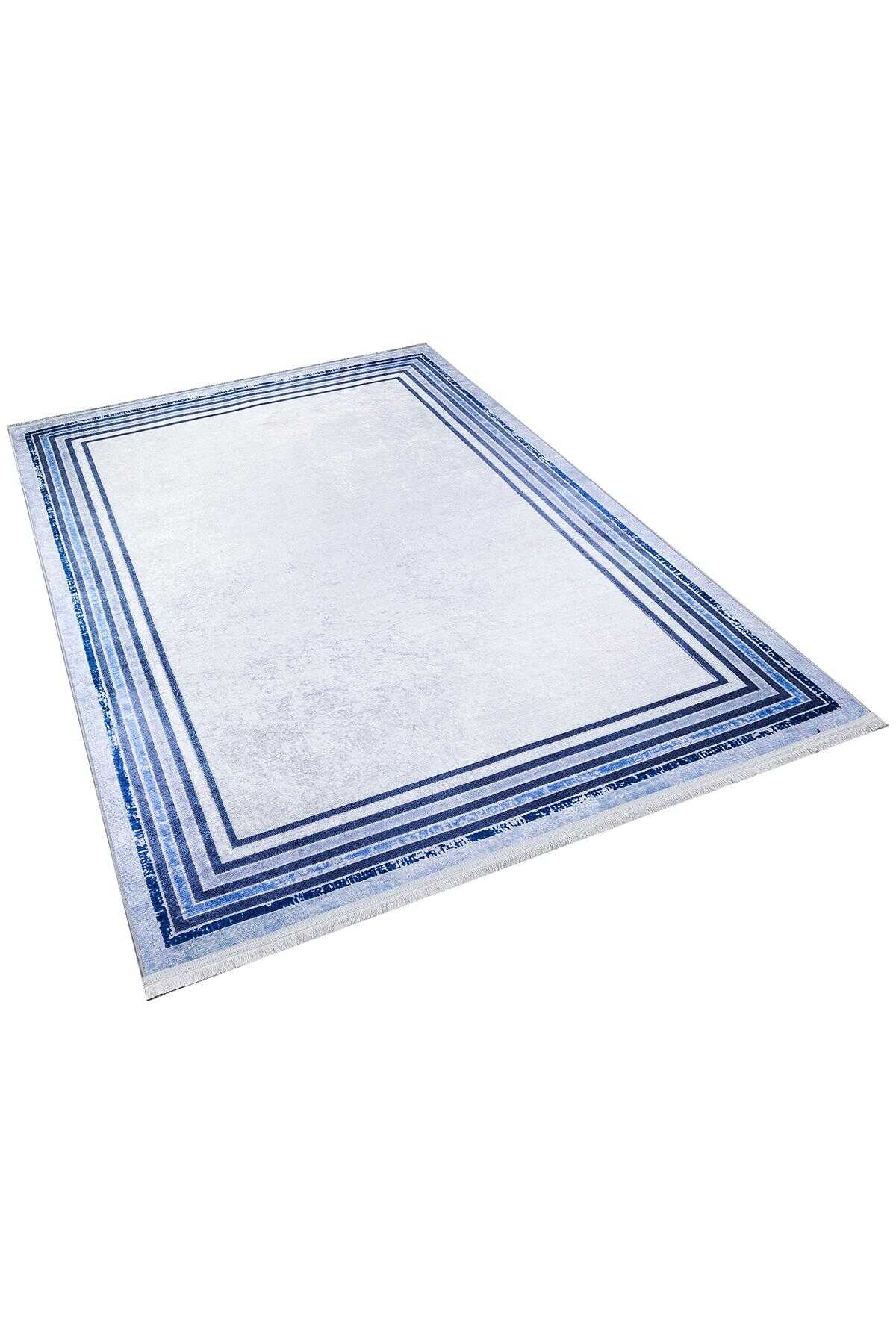Çerçeveli Pamuk Taban Dijital Baskılı Halı Mavi