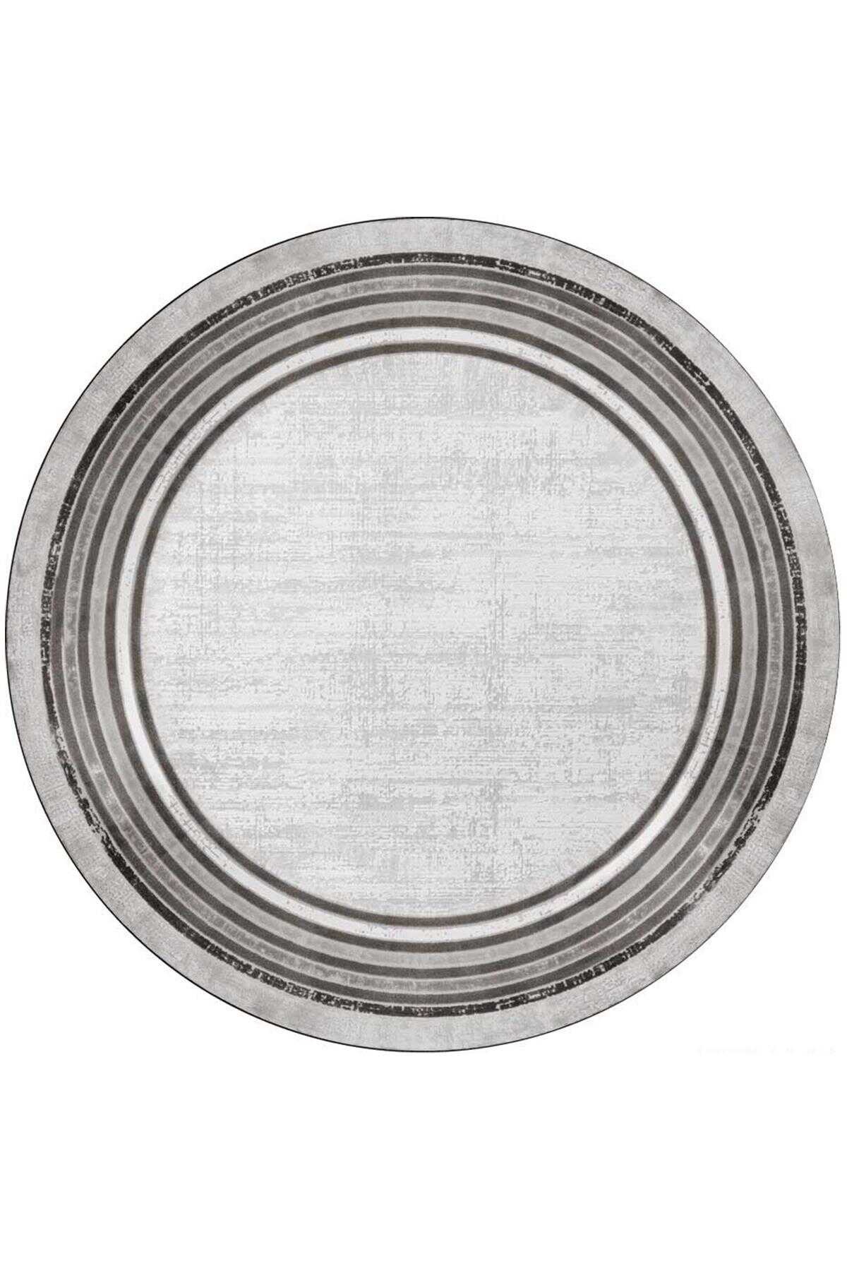 Çerçeveli Pamuk Taban Dijital Baskılı Yuvarlak Halı Gri