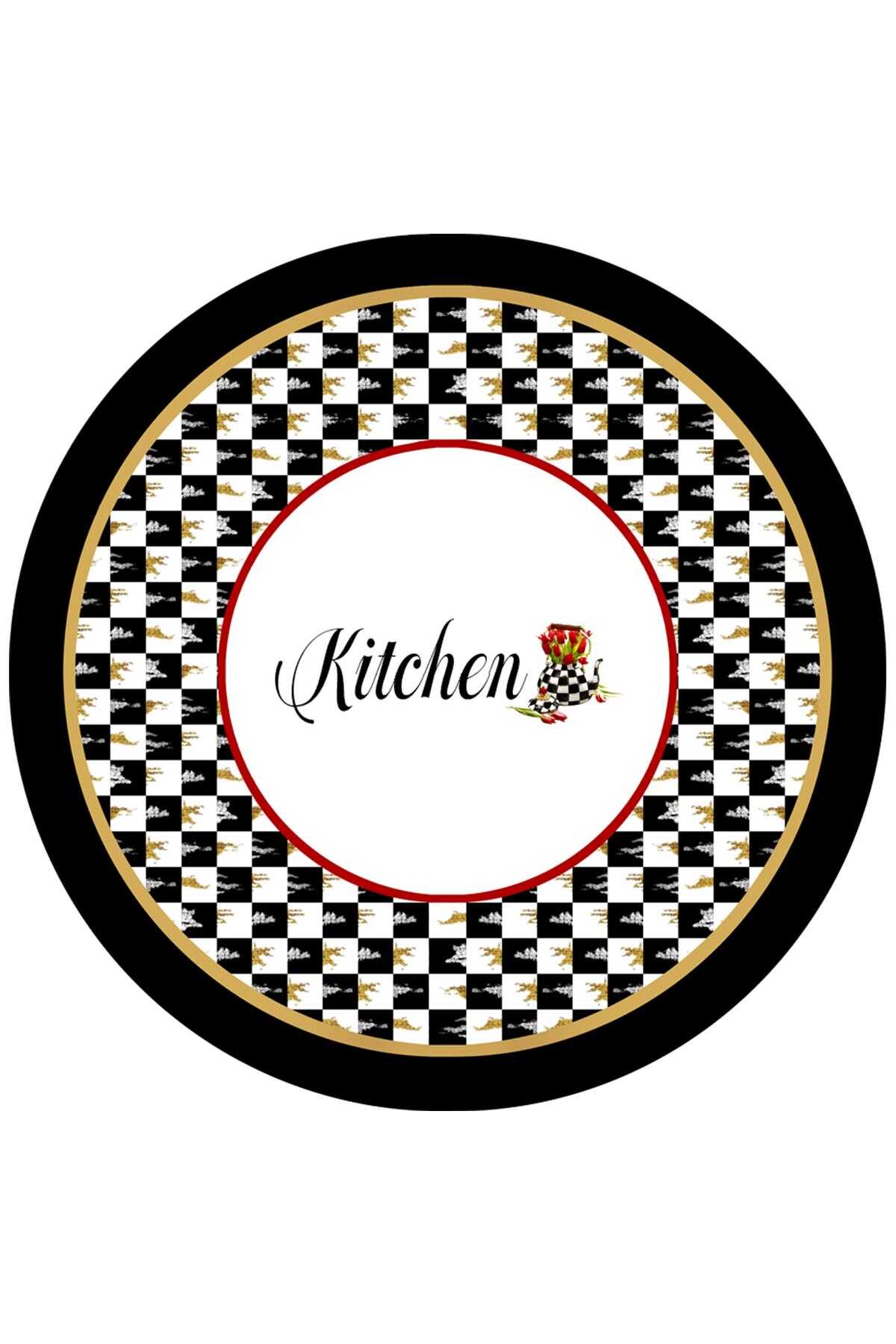Dama Desen Yıkanabilir Pamuk Taban Kitchen Yazılı Yuvarlak Mutfak Halısı