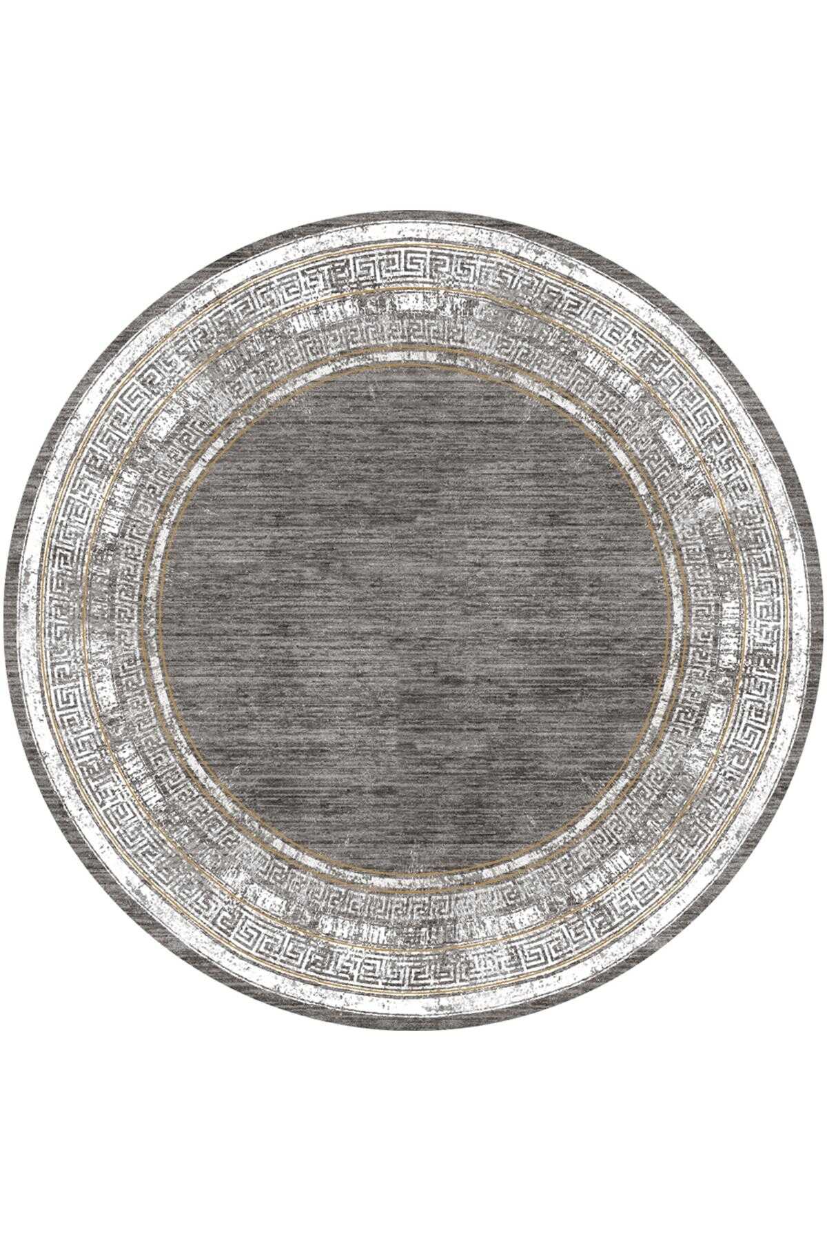 Dekoratif Çerçeve Desenli Pamuk Taban Dijital Baskılı Yuvarlak Halı Gri