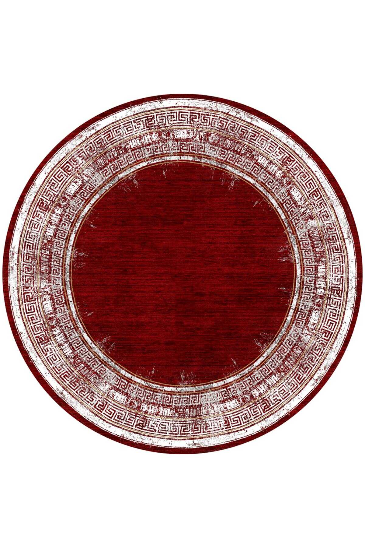 Dekoratif Çerçeve Desenli Pamuk Taban Dijital Baskılı Yuvarlak Halı Kırmızı