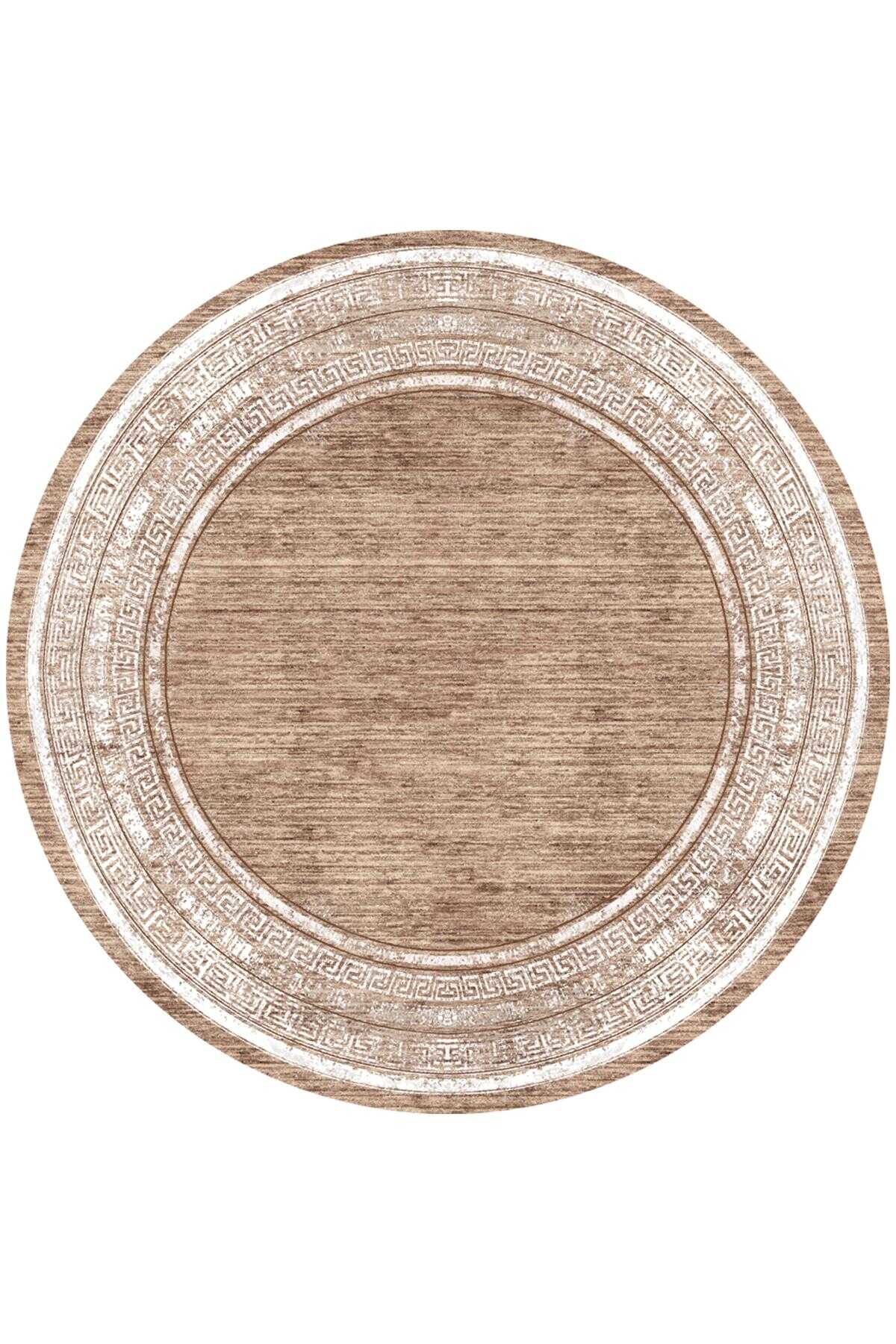 Dekoratif Çerçeve Desenli Pamuk Taban Dijital Baskılı Yuvarlak Halı Vizon