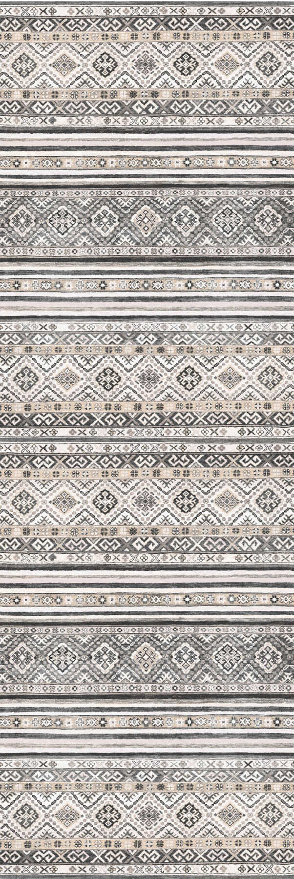 Etnik Kilim Desenli Pamuk Taban Yıkanabilir Baskılı Dekoratif Yolluk Halı Gri