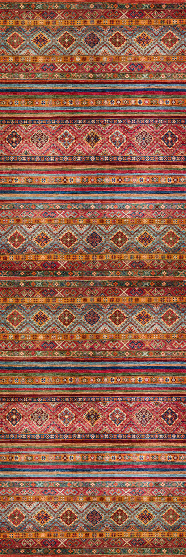 Etnik Kilim Desenli Pamuk Taban Yıkanabilir Baskılı Dekoratif Yolluk Halı Kırmızı