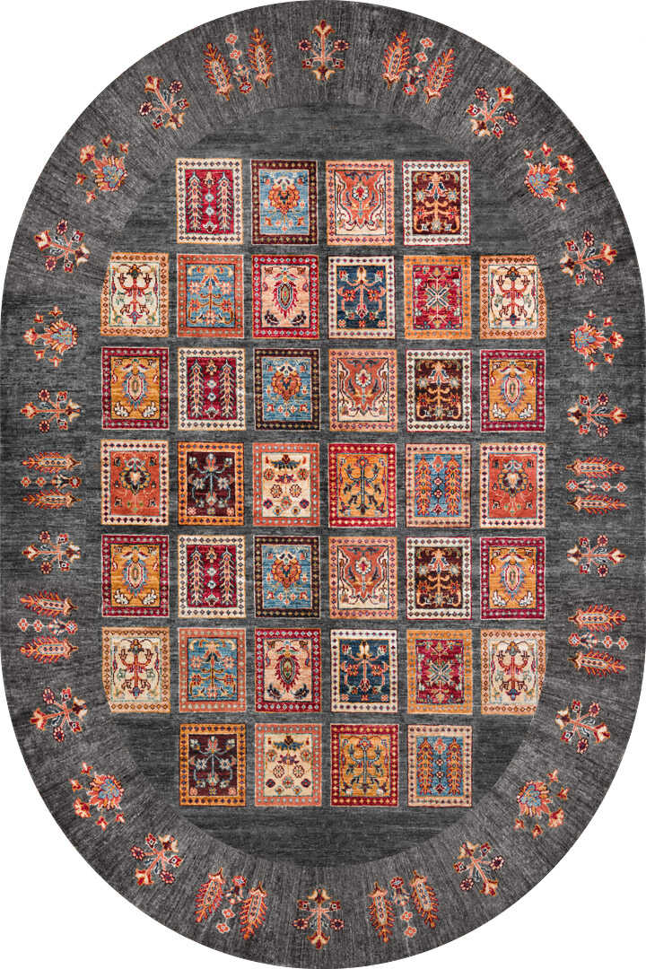 Frenda Home Binbirgece Pamuk Taban Yıkanabilir Dijital Baskılı Oval Halı Gri