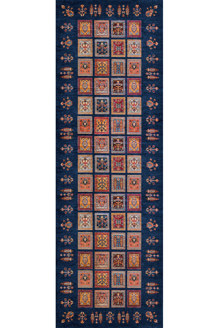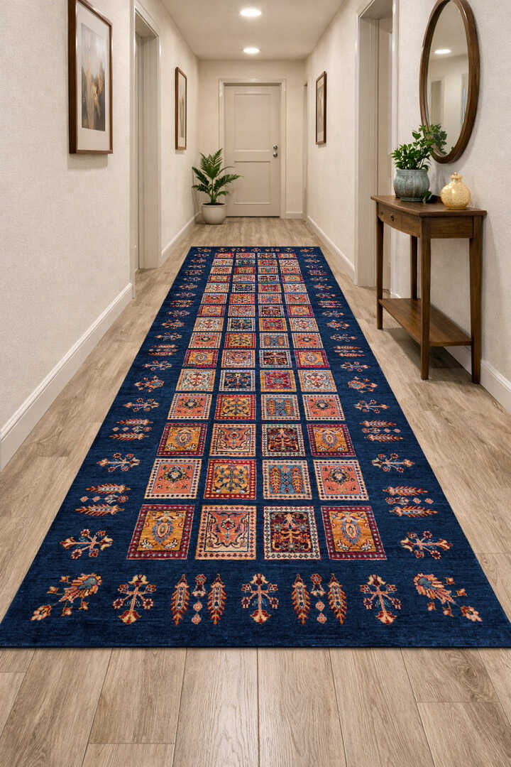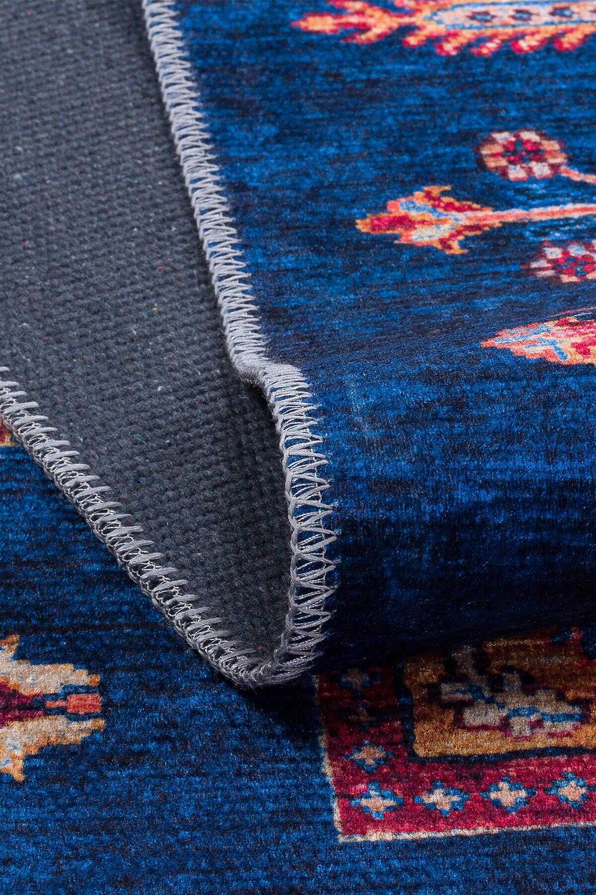 Frenda Home Binbirgece Pamuk Taban Yıkanabilir Dijital Baskılı Yolluk Halı Lacivert