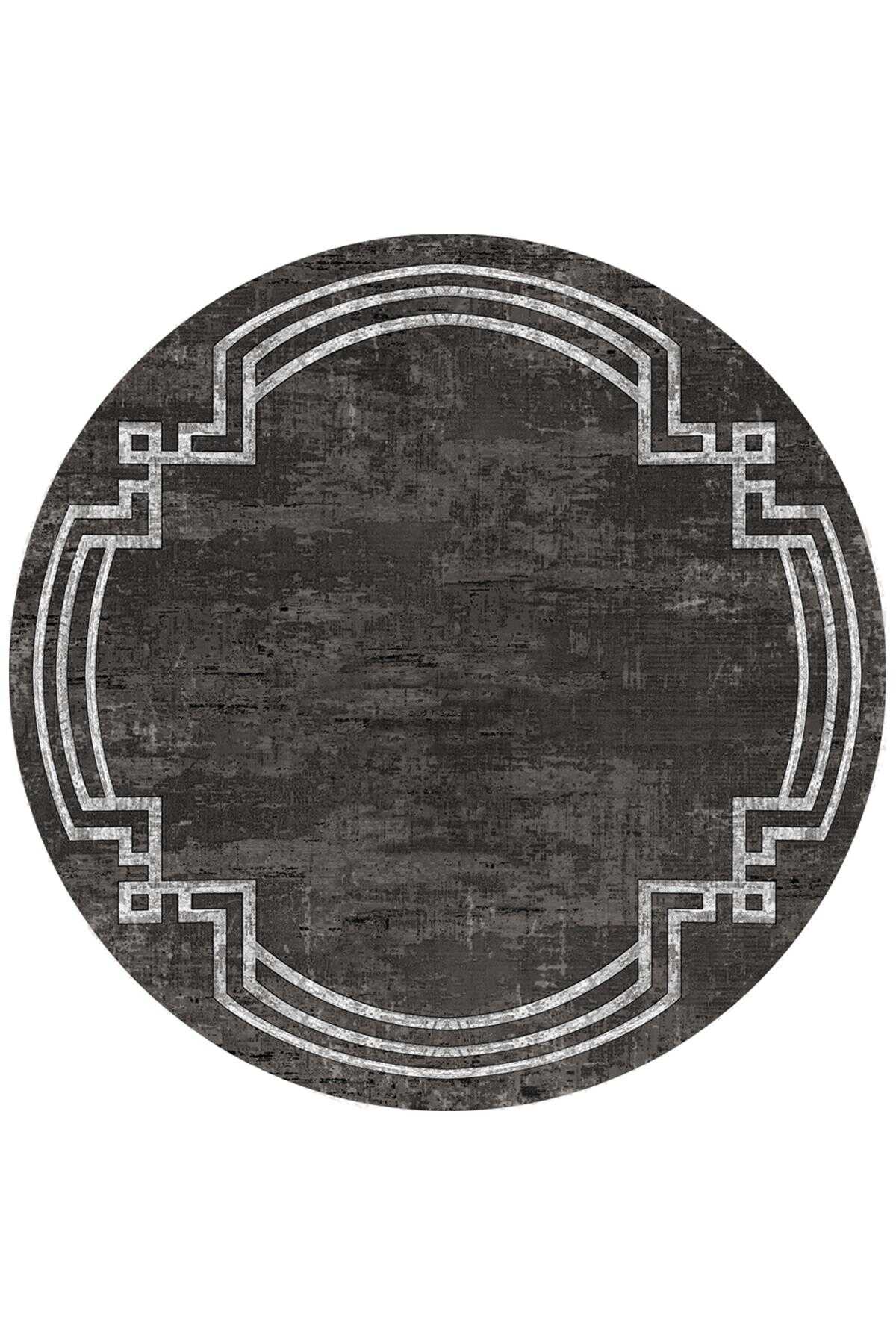 Frenda Home Çerçeve Desen Dokuma Pamuk Taban Dijital Dekoratif Yuvarlak Halı Antrasit
