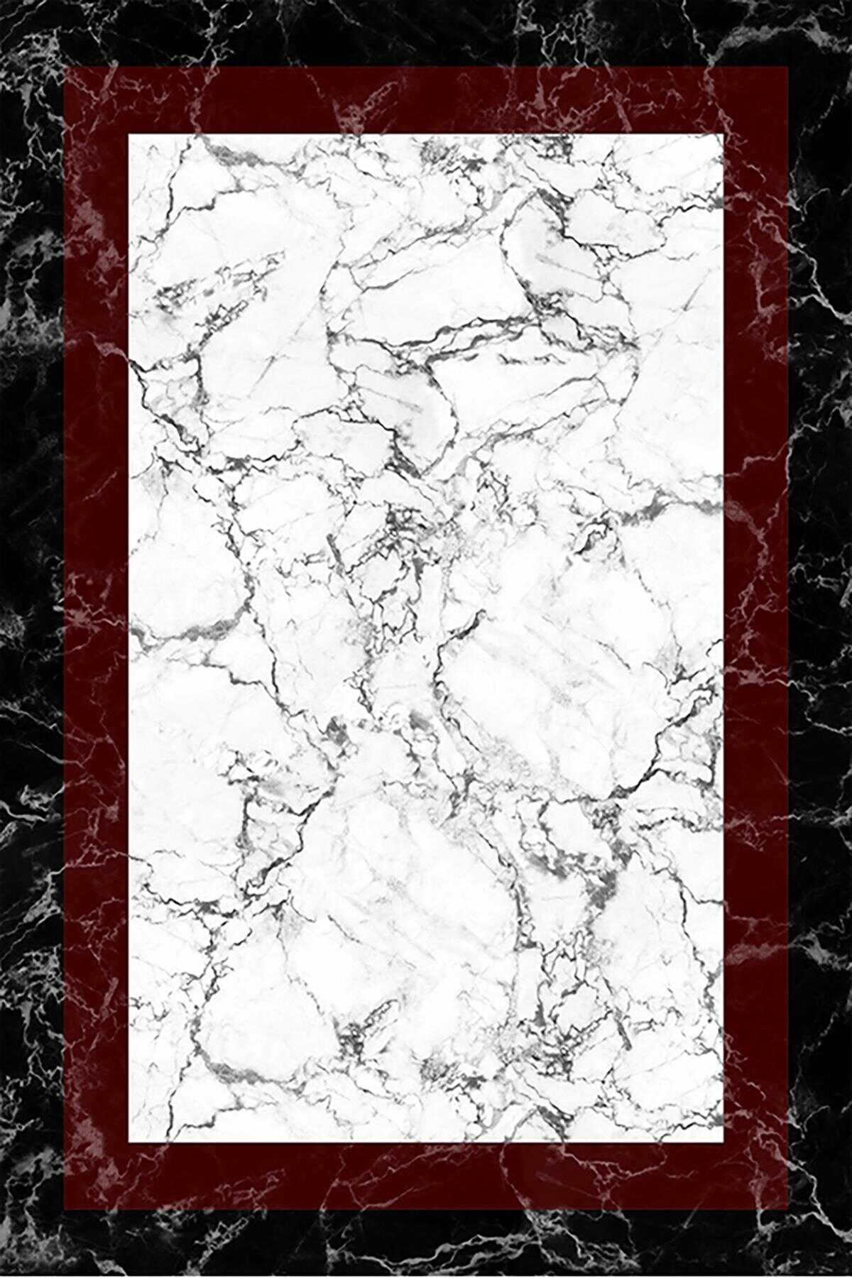 Frenda Home Çerçeve Mermer Desen Kaymaz Deri Taban Dekoratif Halı Kırmızı