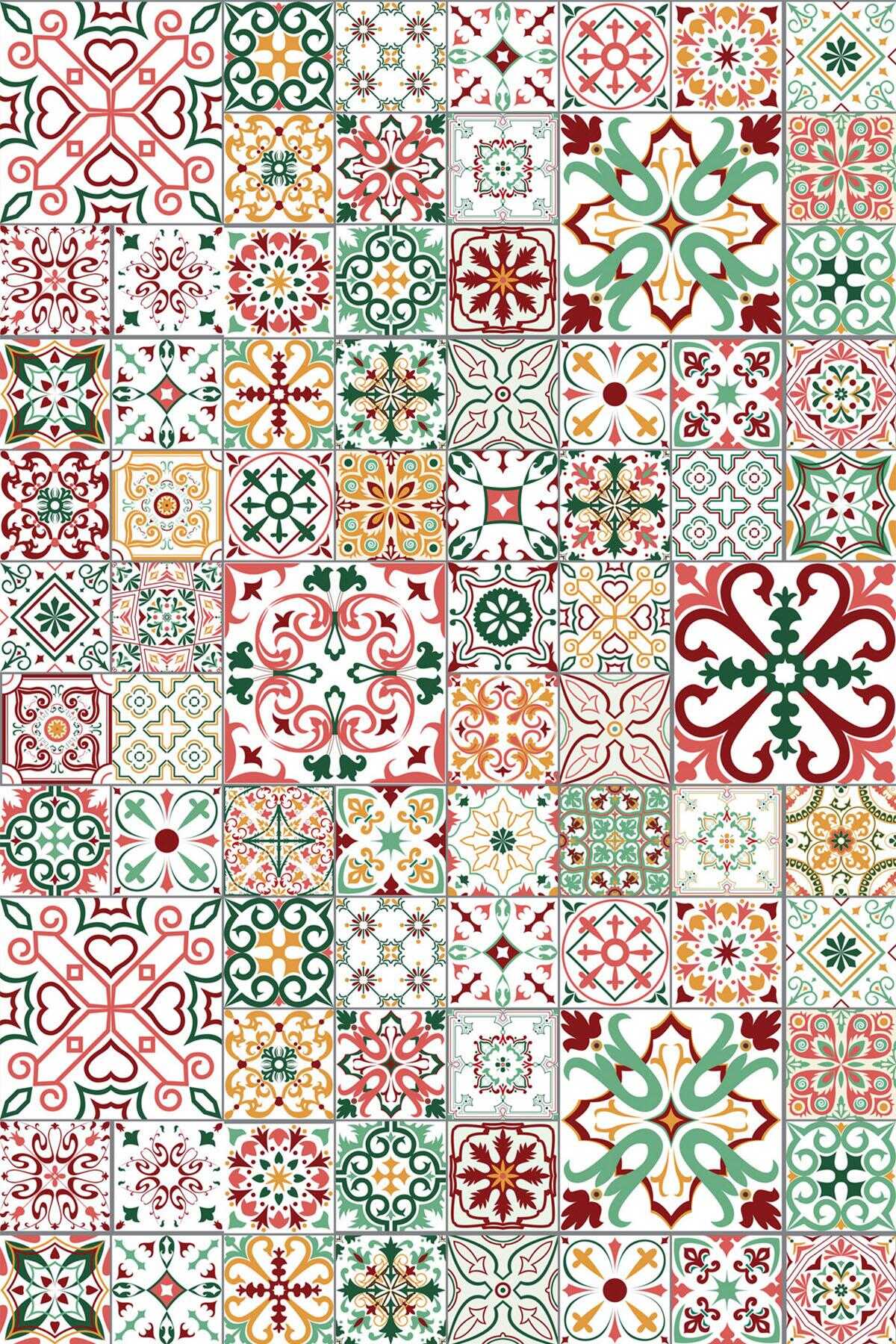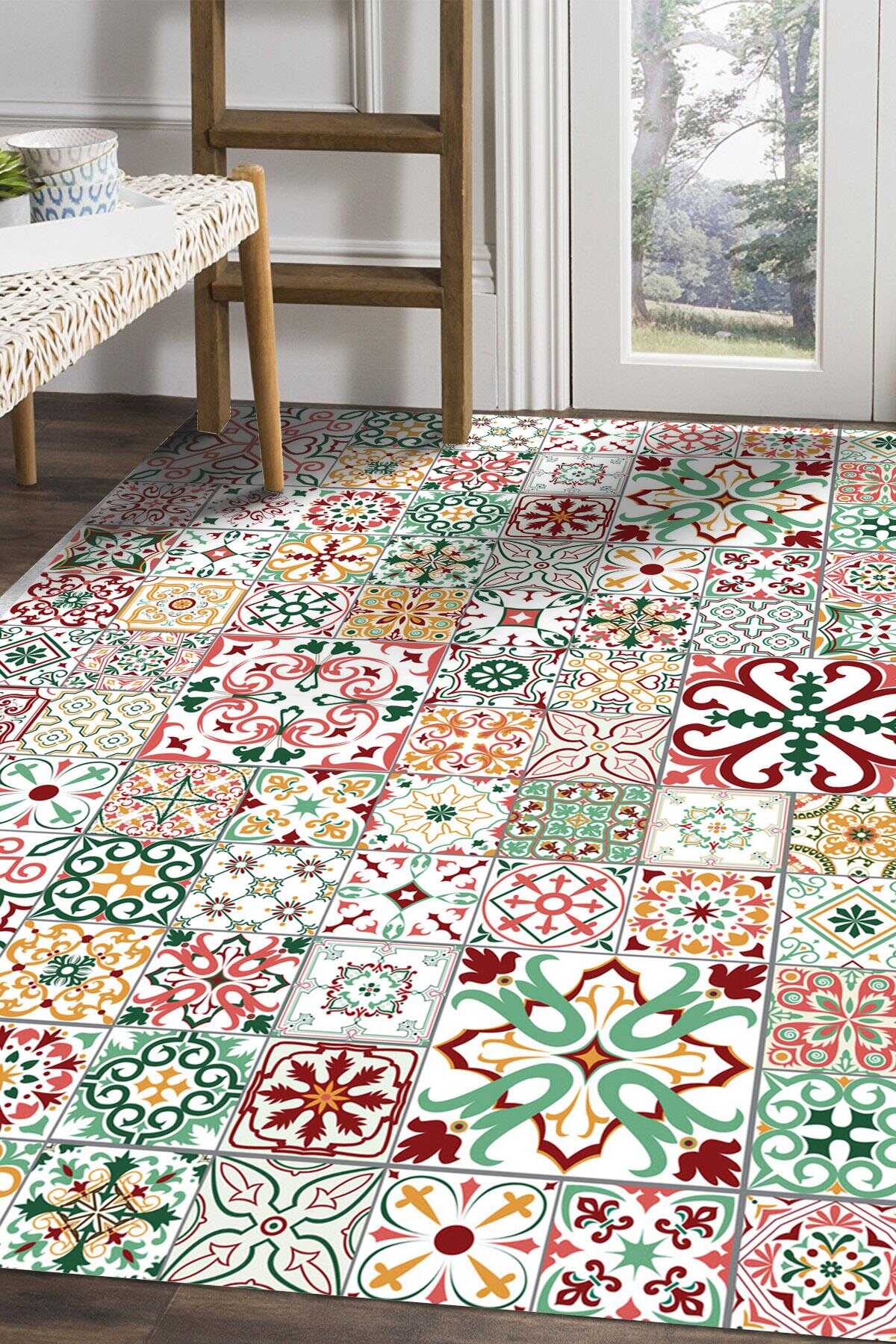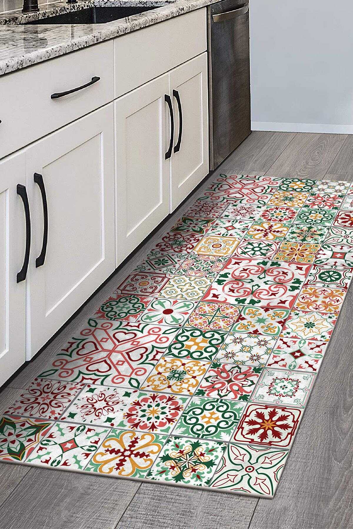 Frenda Home Çini Desenli Pamuk Taban Yıkanabilir Baskılı Halı Kırmızı