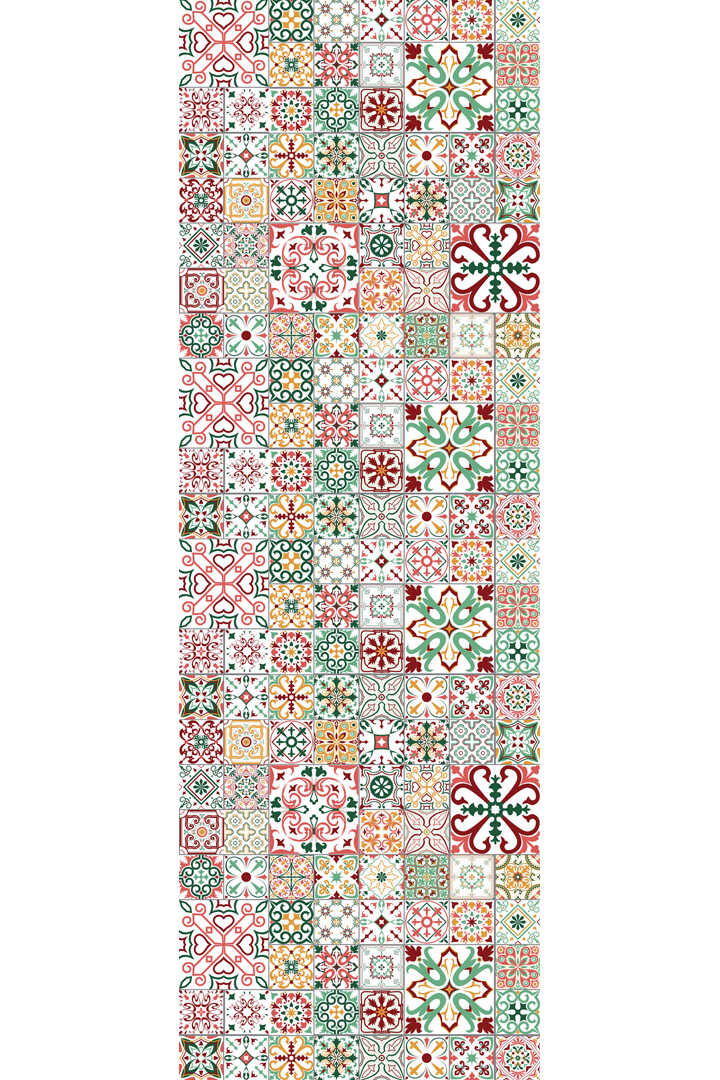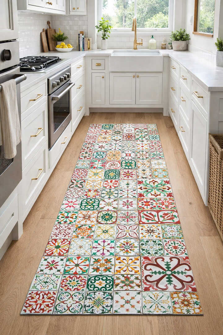 Frenda Home Çini Desenli Pamuk Taban Yıkanabilir Baskılı Yolluk Halı Kırmızı