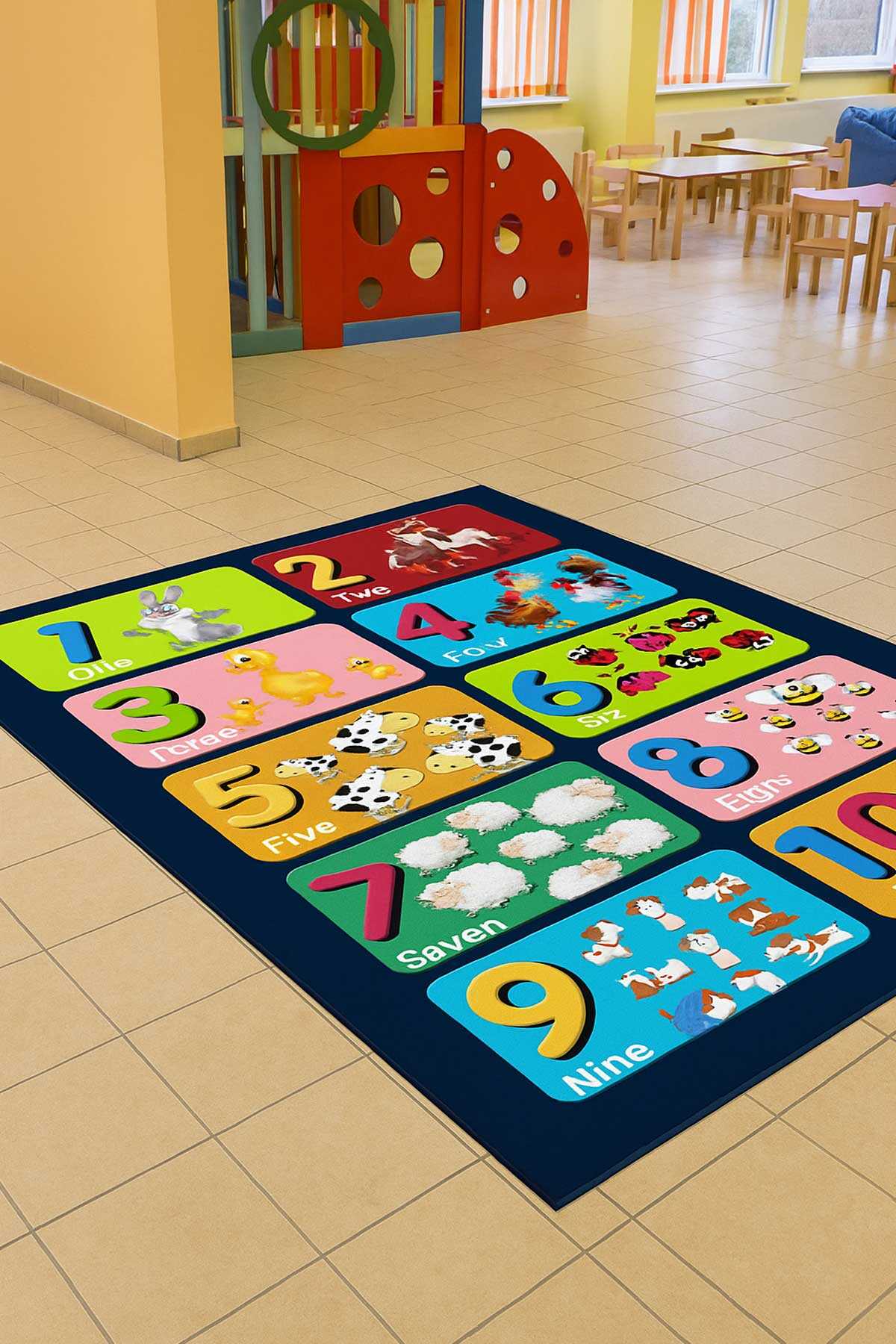 Çamaşır makinesiyle 30 derecede yıkanabilir, renkli baskı halıdır.