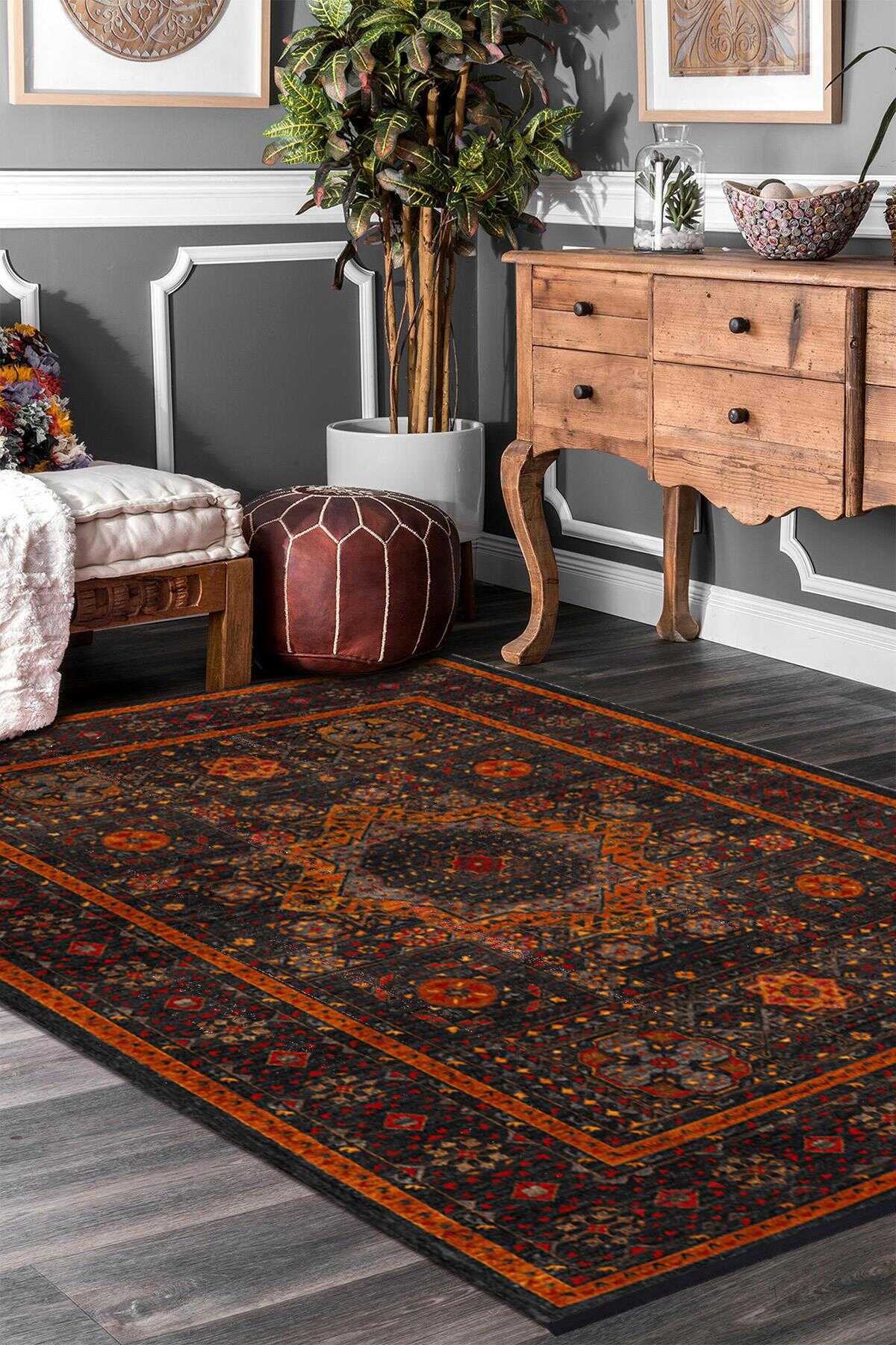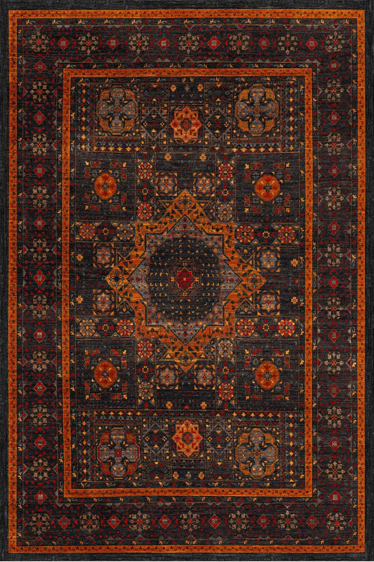 Çamaşır makinesiyle 30 derecede yıkanabilir, renkli baskı halıdır.