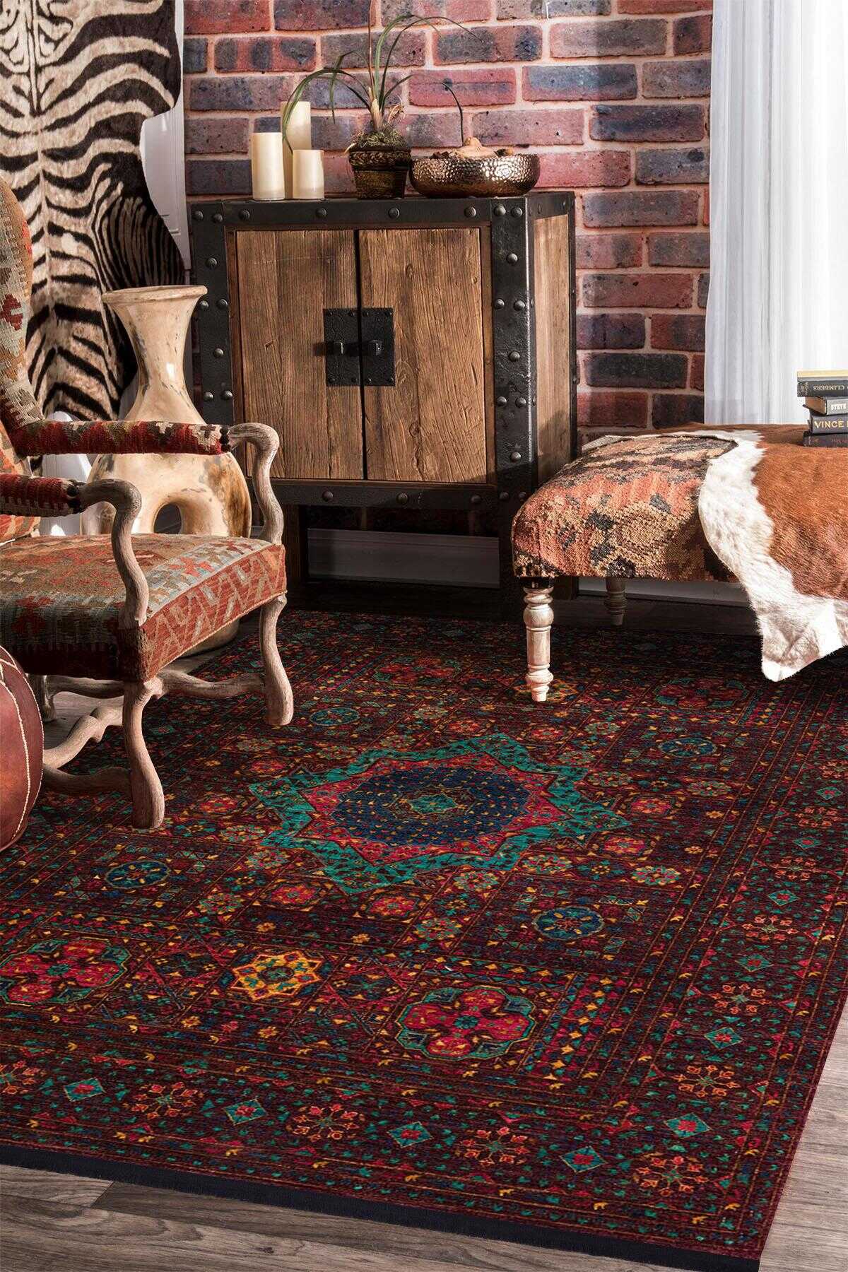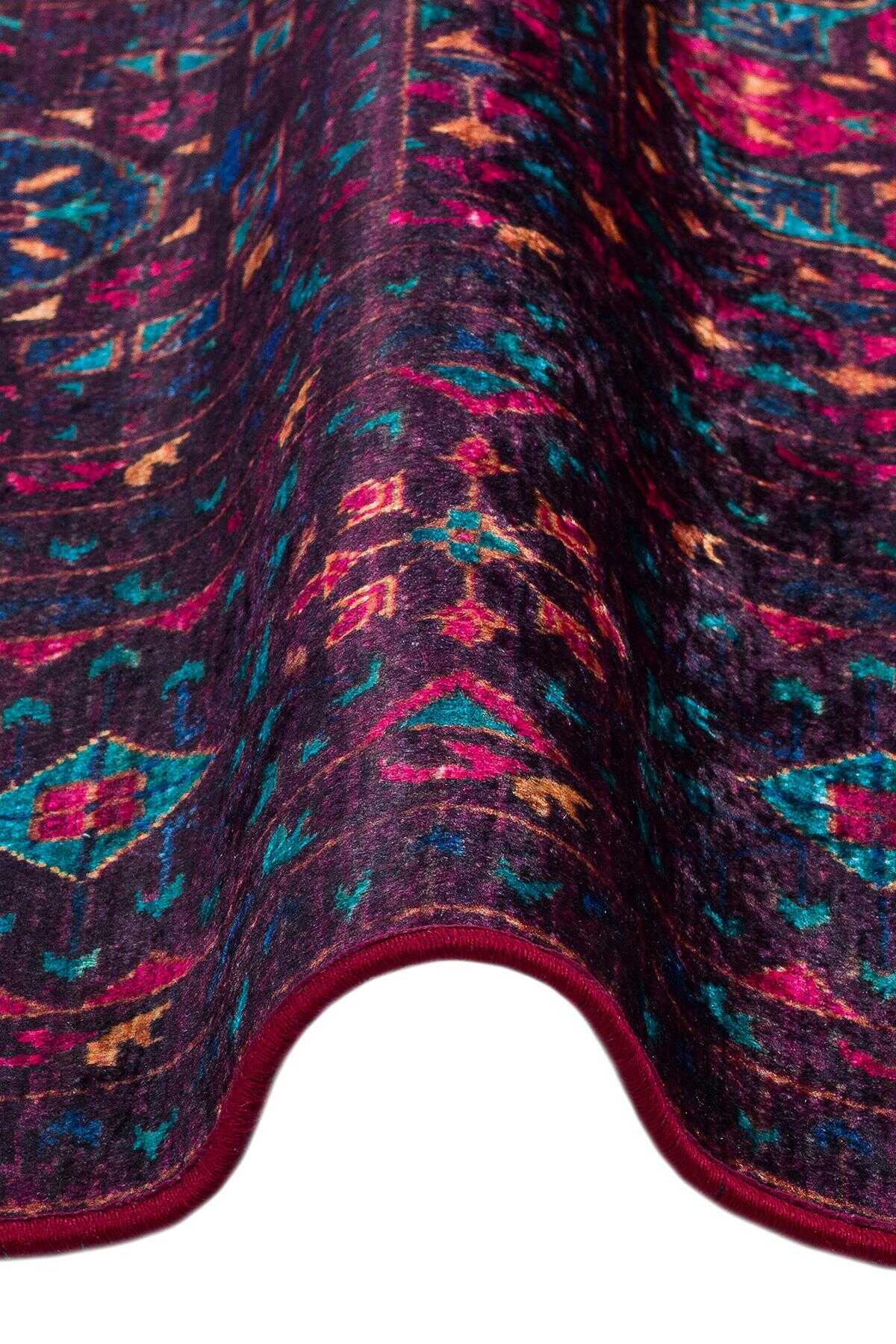 Çamaşır makinesiyle 30 derecede yıkanabilir, renkli baskı halıdır.
