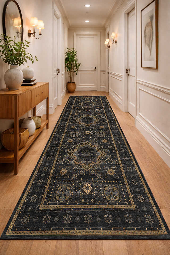 Frenda Home Fas Kapısı Desenli Yıkanabilir Pamuk Taban Özel Kesme Yolluk Halı Vizon