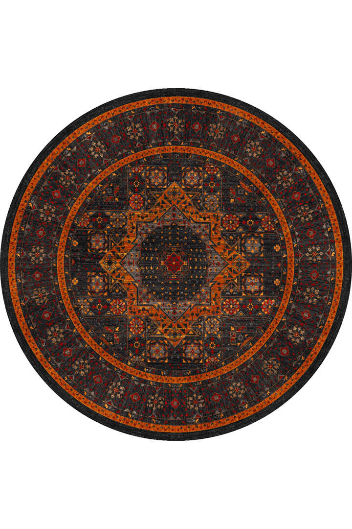 Frenda Home Fas Kapısı Desenli Yıkanabilir Pamuk Taban Yuvarlak Halı Turuncu