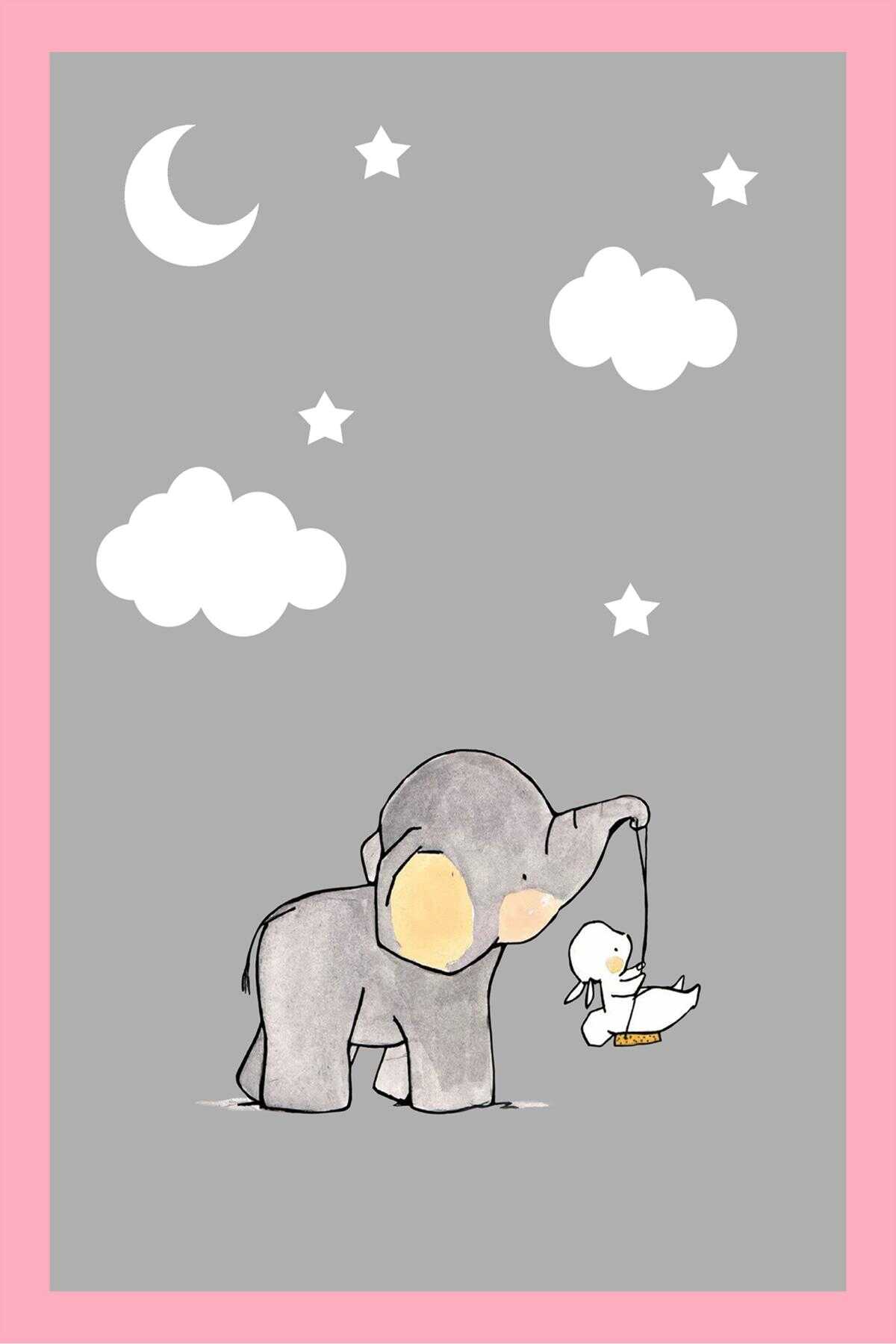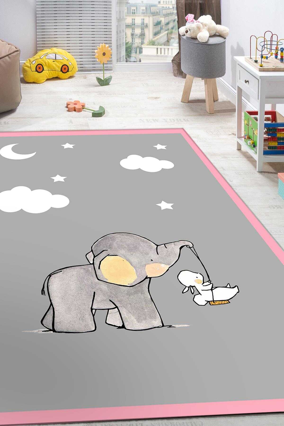 Frenda Home Fil Desenli Kaymaz Deri Taban Çocuk Ve Bebek Odası Halısı Pembe