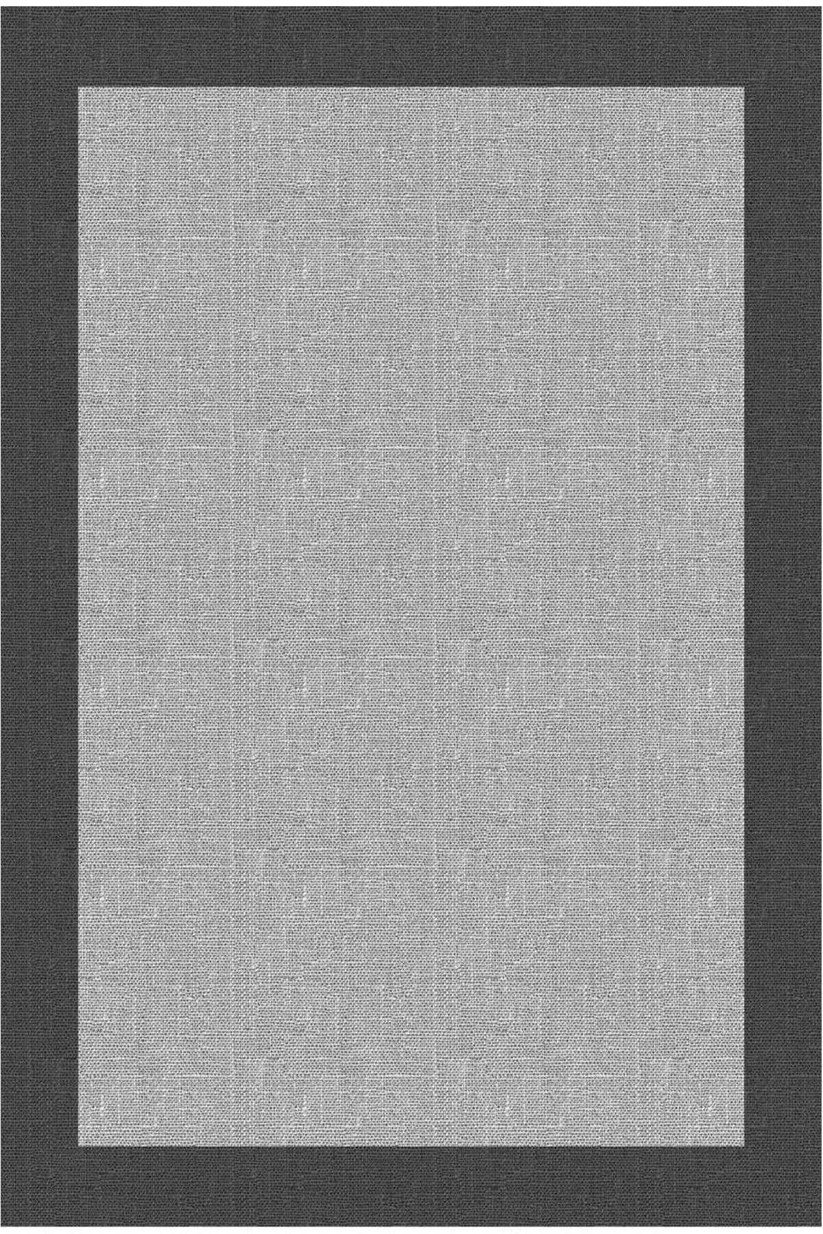 Frenda Home Hasır Görünümlü Dijital Baskı Şönil Pamuk Taban Halı Siyah