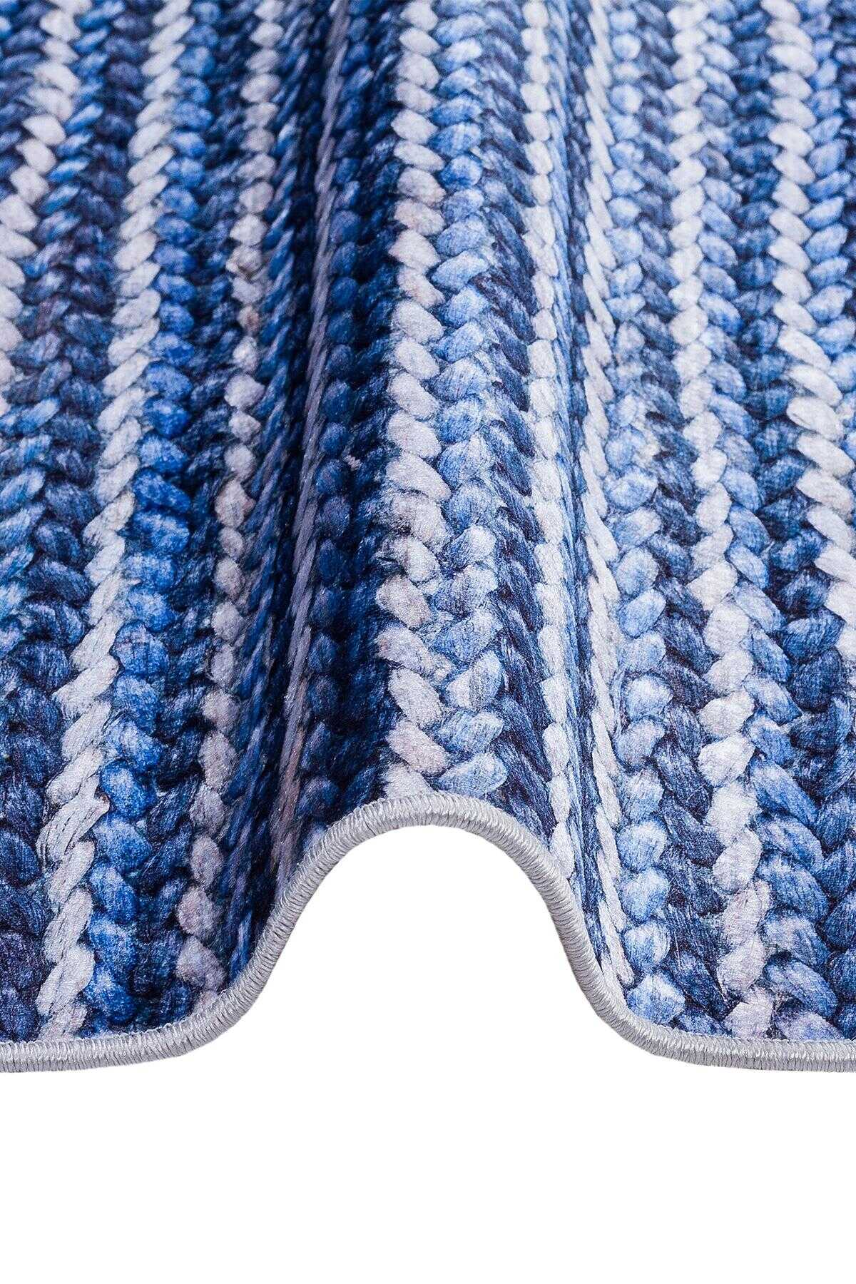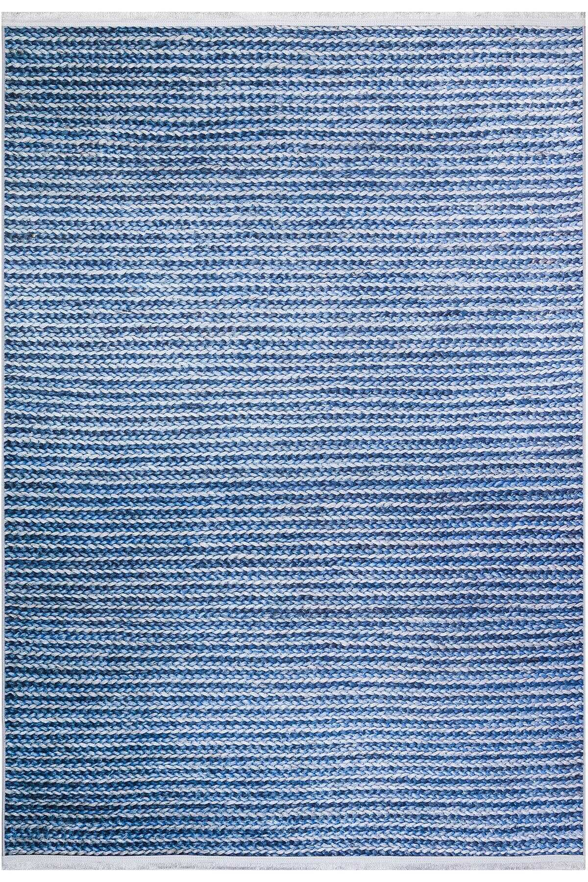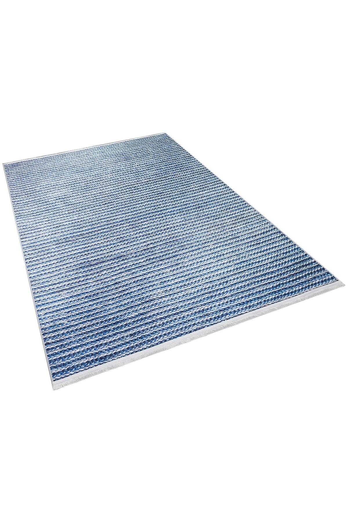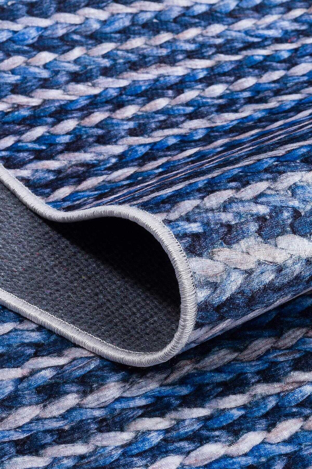 Frenda Home Hasır Görünümlü Pamuk Taban Dijital Baskılı Dekoratif Halı Mavi