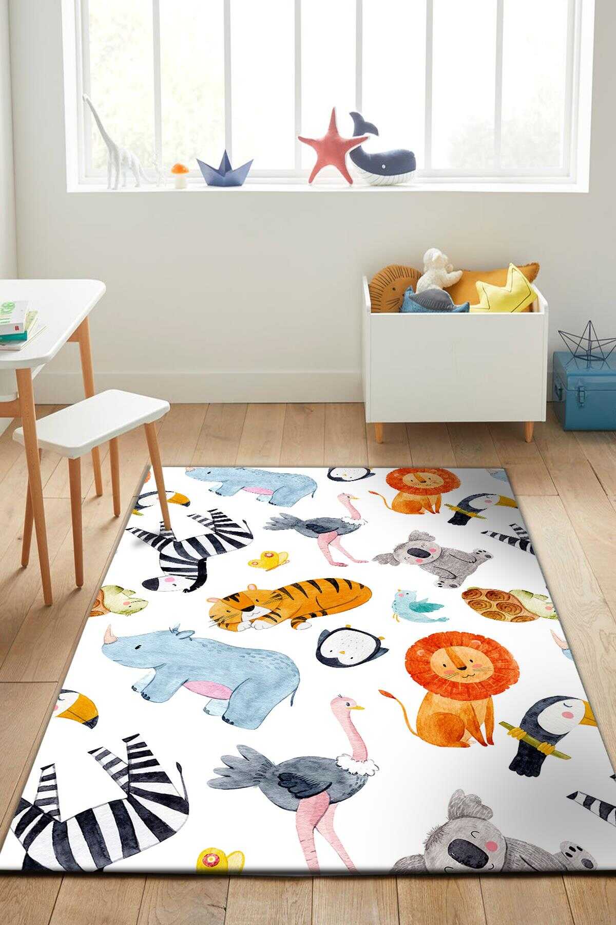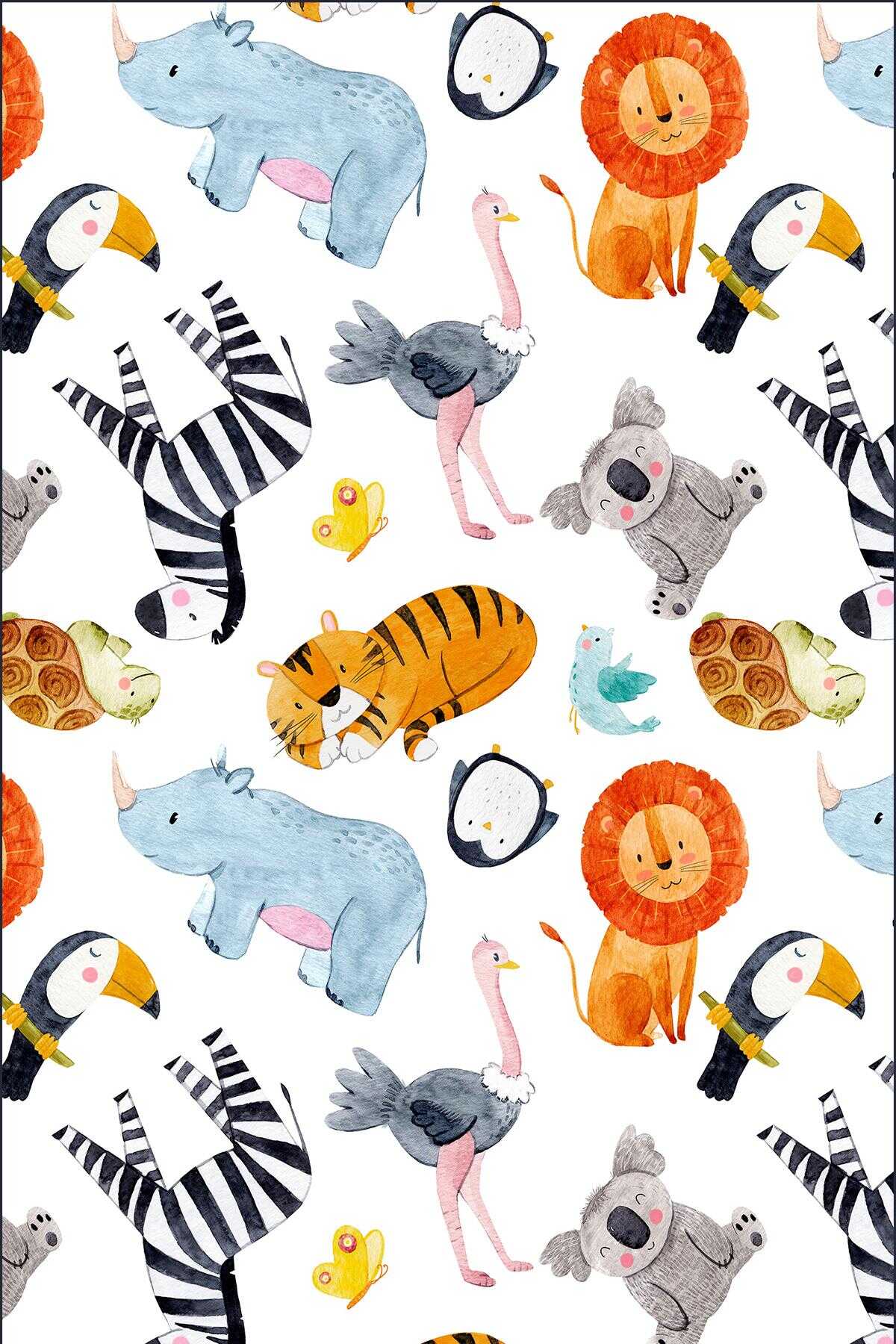 Frenda Home Hayvanlar Alemi Desenli Pamuk Taban Baskılı Anaokulu ve Kreş Halısı