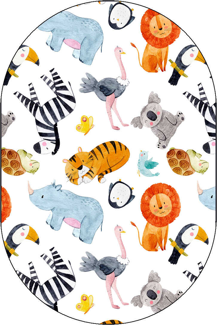 Frenda Home Hayvanlar Alemi Desenli Pamuk Taban Baskılı Anaokulu ve Oval Kreş Halısı
