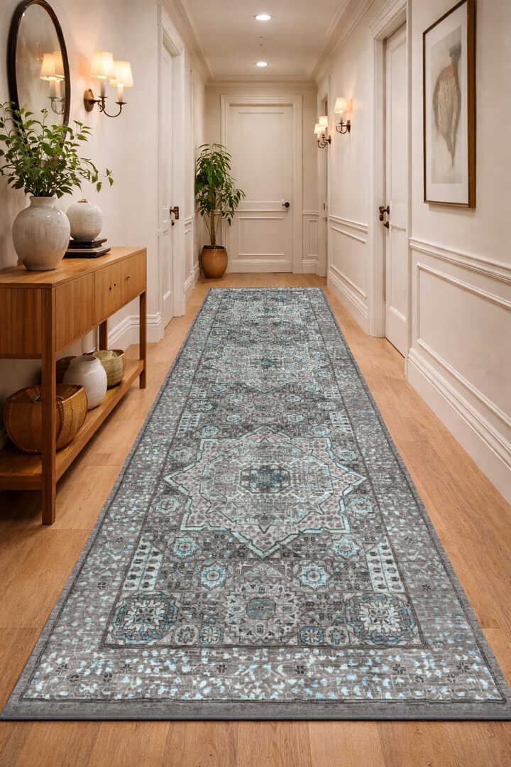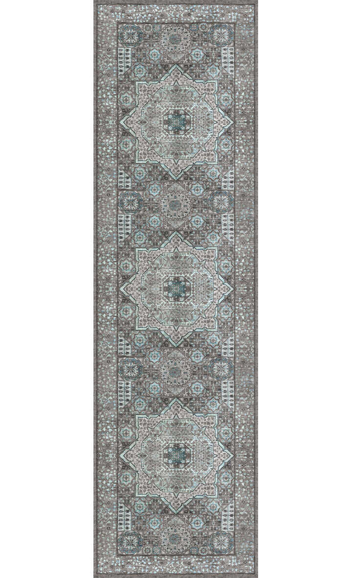 Frenda Home Kesme Yolluk Vintage Desen Pamuk Taban Baskılı Yıkanabilir Gri Halı