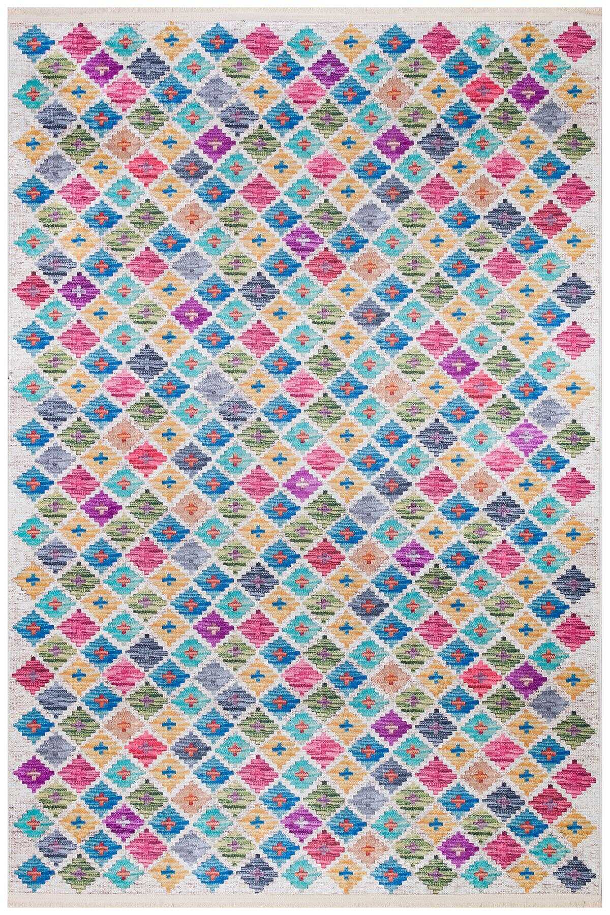 Frenda Home Kilim Desen Pamuk Taban Baskılı Halı Krem