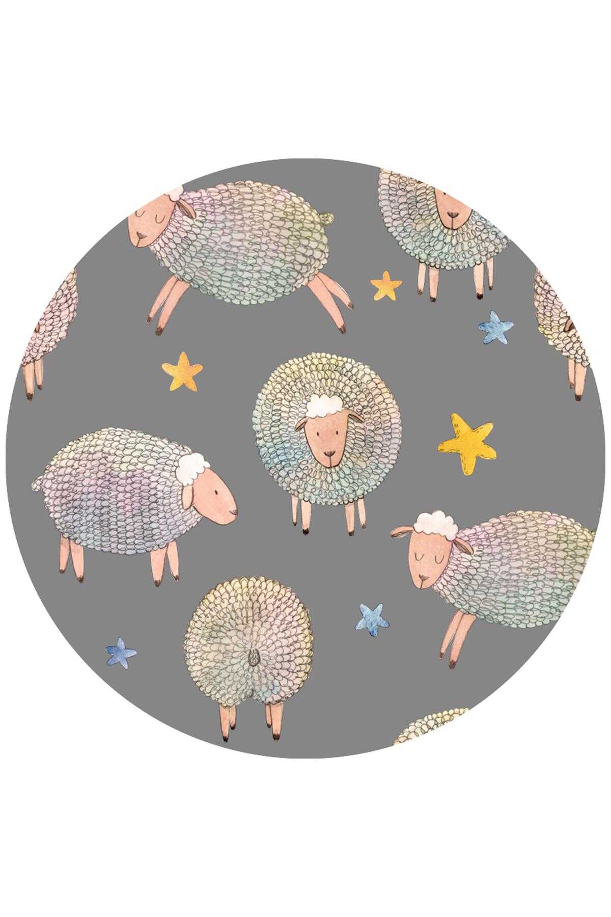 Frenda Home Koyun Desenli Kaymaz Deri Taban Yuvarlak Çocuk Ve Bebek Halısı Gri