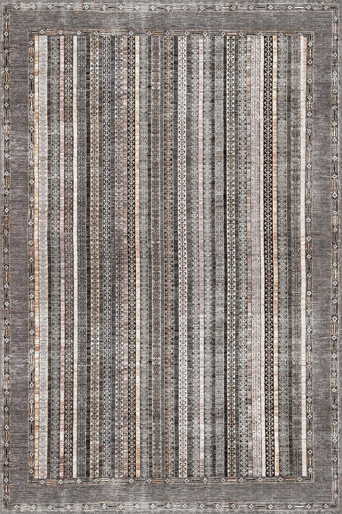 Frenda Home Şal Desen Pamuk Taban Yıkanabilir Halı Gri