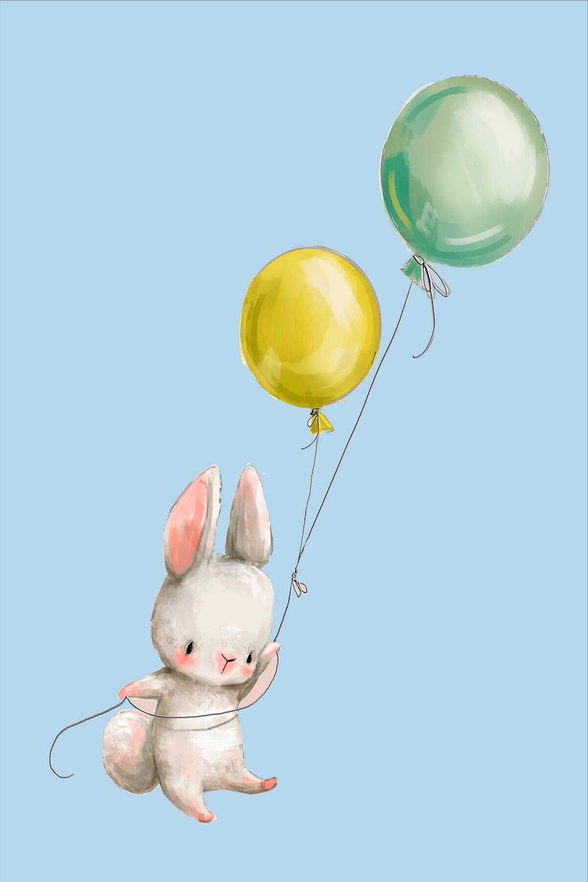 Frenda Home Tavşan Desenli Kaymaz Deri Taban Çocuk Odası Halısı Mavi