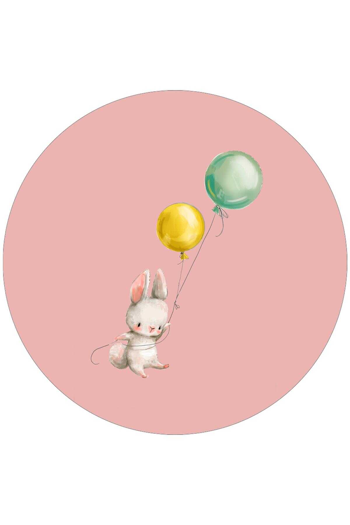 Frenda Home Tavşan Desenli Kaymaz Deri Taban Yuvarlak Çocuk Odası Halısı Pembe