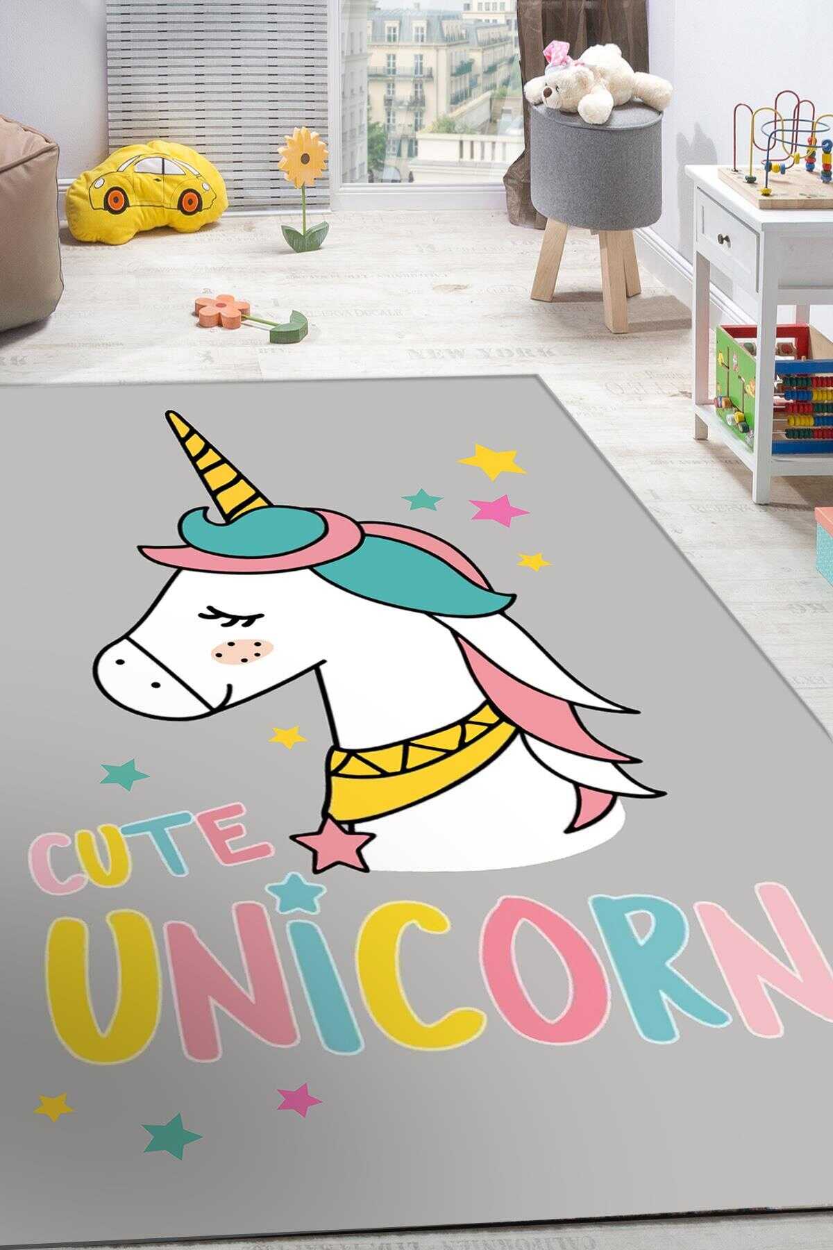 Frenda Home Unicorn Desenli Kaymaz Deri Taban Kız Çocuk Halısı