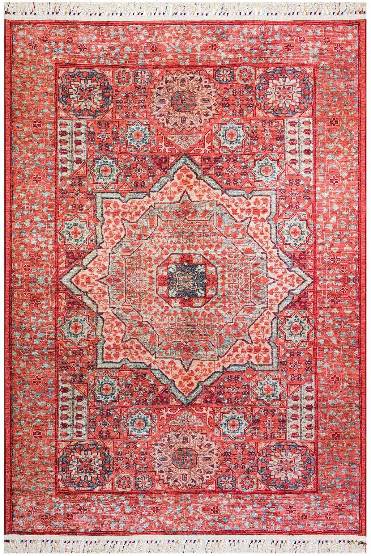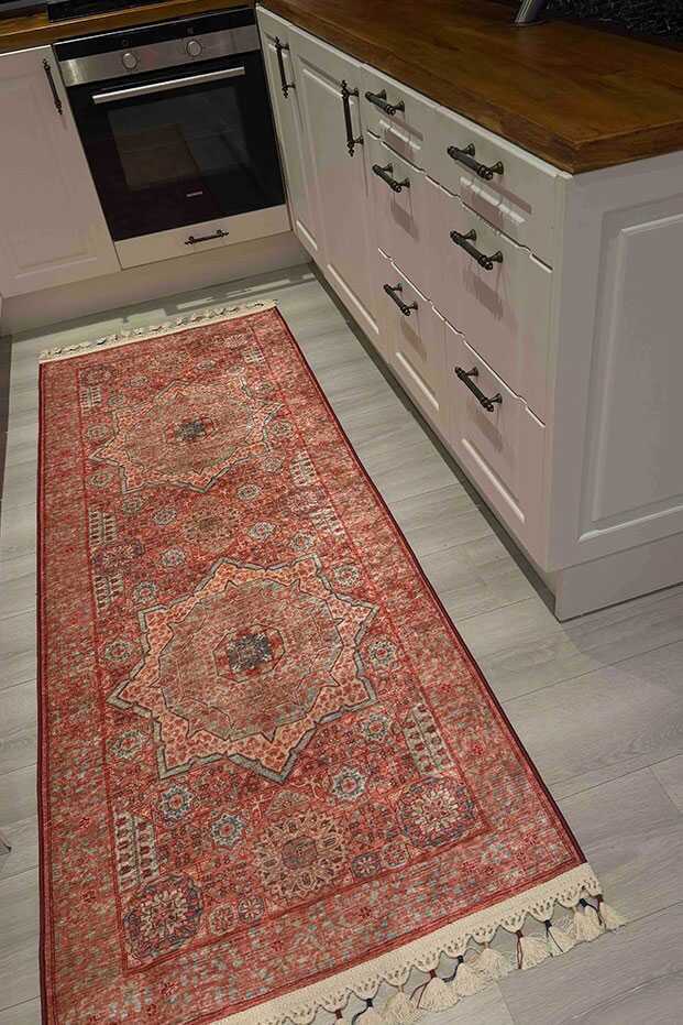 Frenda Home Vintage Desen Pamuk Taban Baskılı Yıkanabilir Halı